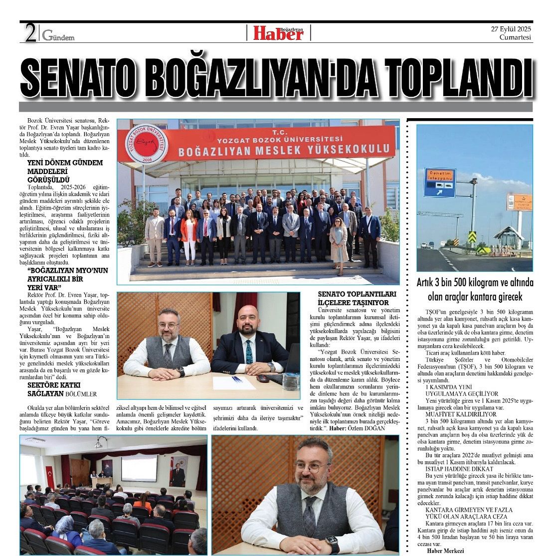 Rektörümüz Prof. Dr. Evren YAŞAR başkanlığında Meslek Yüksekokulumuz’da gerçekleştirilen senato toplantısına ilişkin haber, Boğazlıyan Haber tarafından kamuoyuyla paylaşıldı.