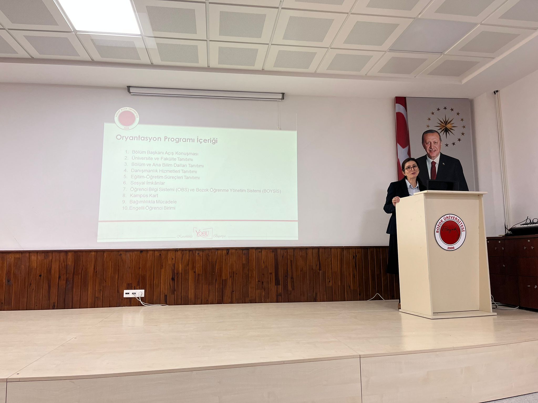 Program kapsamında üniversitemiz ve fakültemizin tanıtımı, bölümümüz ve bölümümüz ana bilim dallarına ilişkin bilgilendirmeler, akademik danışmanlık hizmetleri, eğitim-öğretim süreçleri, öğrenci bilgi sistemleri, sosyal imkânlar, bağımlılıkla mücadele ve Engelli Öğrenci Birimi çalışmaları gibi öğrencilerimizin uyum sürecine katkı sağlayacak önemli konular ele alınmıştır.