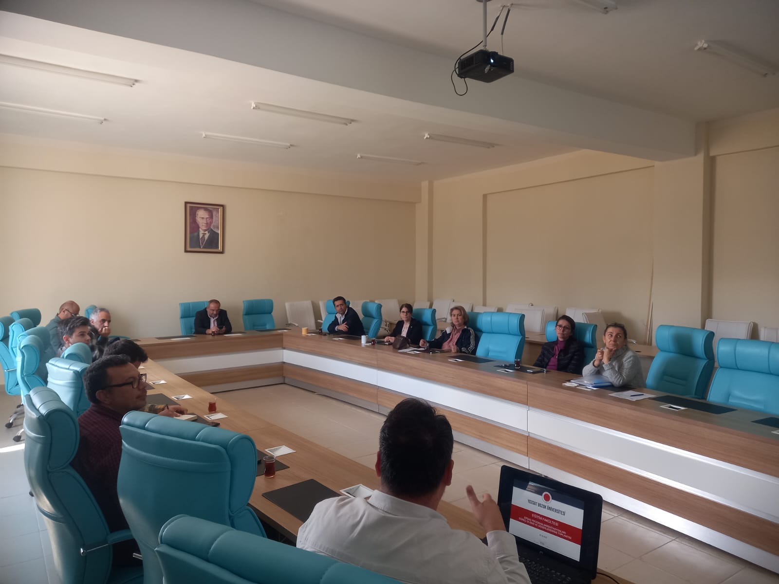 02.10.2025 Perşembe günü saat 13:00’te Fakültemiz dekanlık toplantı odasında program akreditasyonlarına yönelik süreç izleme ve değerlendirme toplantısı gerçekleştirildi. Toplantıya fakülte yönetimi, bölüm başkanları ve ana bilim dalı başkanları katılım sağladı. Toplantı, fakültemiz dekanı Prof. Dr. Gürsel GÜLER’in eğitim hizmetlerinde kalite süreçlerinin ve program akreditasyonlarının önemini vurgulayan açılış konuşmalarıyla başladı. Toplantıda program akreditasyon sorumluları ve bölüm başkanları, ana bilim dalı içerisinde sürdürdükleri çalışmalarla ilgili paylaşımda ve görüş alışverişinde bulundular. Daha sonra ise fakülte akreditasyon koordinatörü Doç. Dr. Uğur GEZER, EPDAD tarafından gerçekleştirilecek olan çevrimiçi ve yüz yüze saha ziyareti süreci hakkında bilgilendirme sunumunu gerçekleştirdi. Toplantı, ana bilim dalları tarafından gerçekleştirilmesi gereken çalışmaların gözden geçirilmesiyle son buldu.