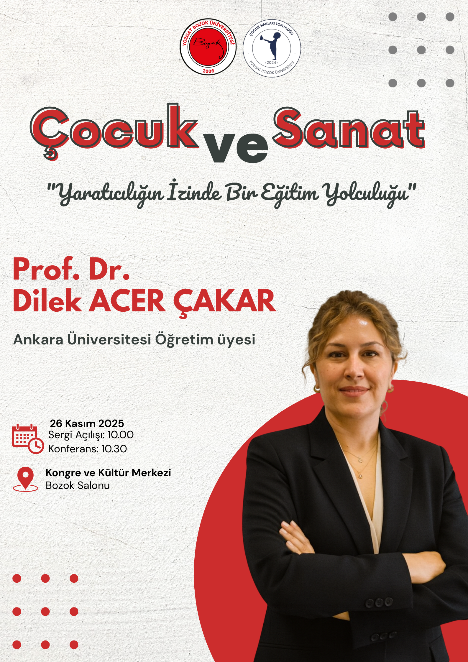 Yozgat Bozok Üniversitesi Eğitim Fakültesi Çocuk Hakları Topluluğu tarafından düzenlenecek “Çocuk ve Sanat: Yaratıcılığın İzinde Bir Eğitim Yolculuğu” başlıklı etkinliğimize tüm öğrencilerimiz davetlidir.