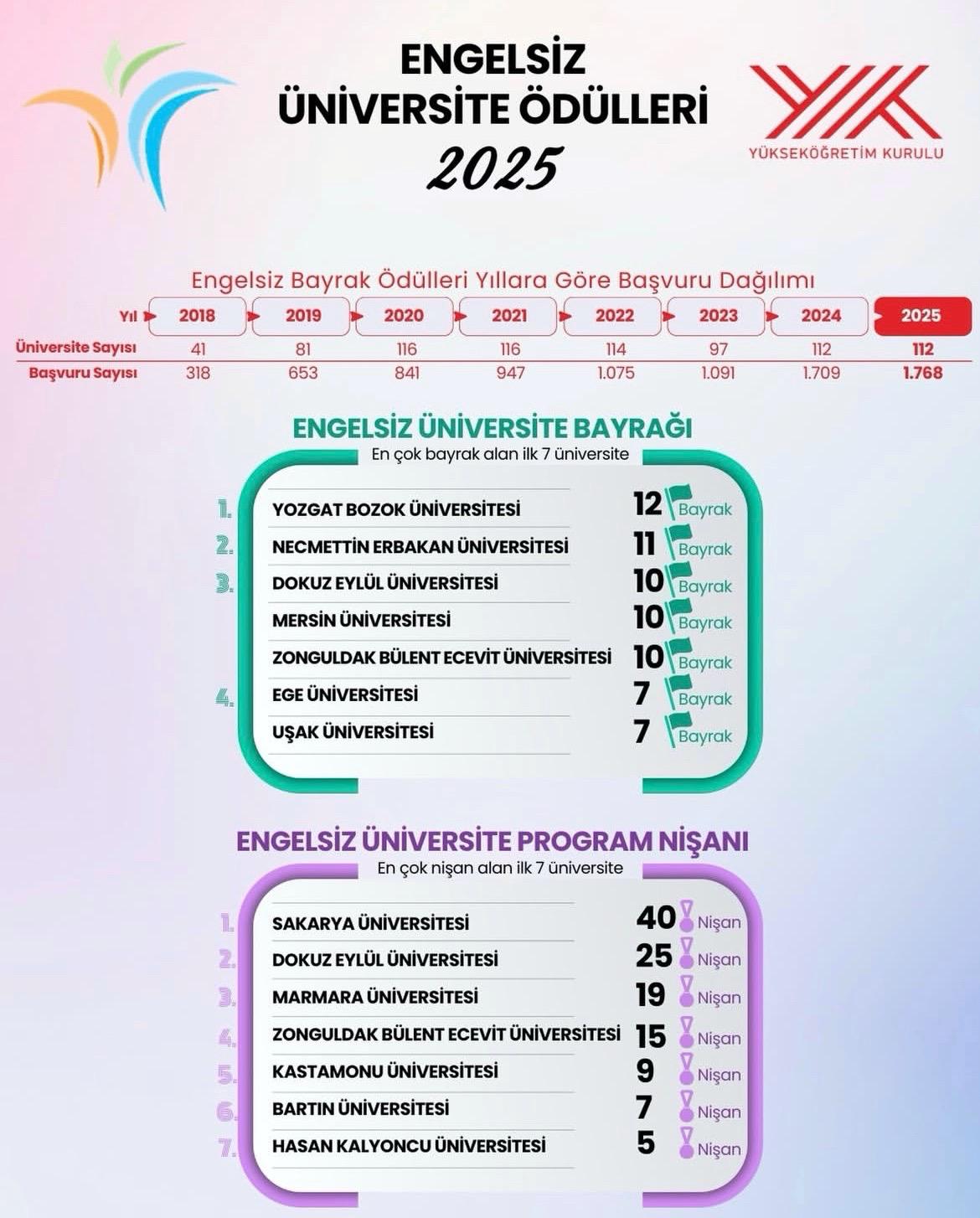 Yükseköğretim Kurulu (YÖK) tarafından düzenlenen 2025 Engelsiz Üniversite Ödülleri sonuçlarına göre üniversitemiz; “Sosyo-Kültürel Faaliyetlerde Erişim” (Mavi Bayrak) kategorisinde 5,“Eğitimde Erişim” (Yeşil Bayrak) kategorisinde 7 olmak üzeretoplam 12 Engelsiz Üniversite Bayrağı alarak listenin zirvesinde yer aldı. Erişilebilirlik alanında elde edilen bu önemli başarıda, Fakültemiz öğretim üyelerinin yönetim ve koordinasyon süreçlerindeki katkıları belirleyici olmuştur. Sürecin başarıyla tamamlanmasında; Fakültemiz Dekan Yardımcısı ve Engelli Öğrenci Birimi Koordinatörü Doç. Dr. Ferhat KARAKAYA ve Fakültemiz Temel Eğitim Bölümü Başkanı ve Engelli Öğrenci Birimi Koordinatör Yardımcısı Doç. Dr. Onur BATMAZ akademik ve idari planlama süreçlerinde aktif görev alarak üniversitemizin bu başarıya ulaşmasına öncülük etmişlerdir. Üniversitemizin kapsayıcı eğitim vizyonuna katkı sunan öğretim üyelerimizi tebrik eder engelsiz bir kampüs hedefiyle yürüttüğümüz çalışmaların devam edeceğini temenni ederiz.