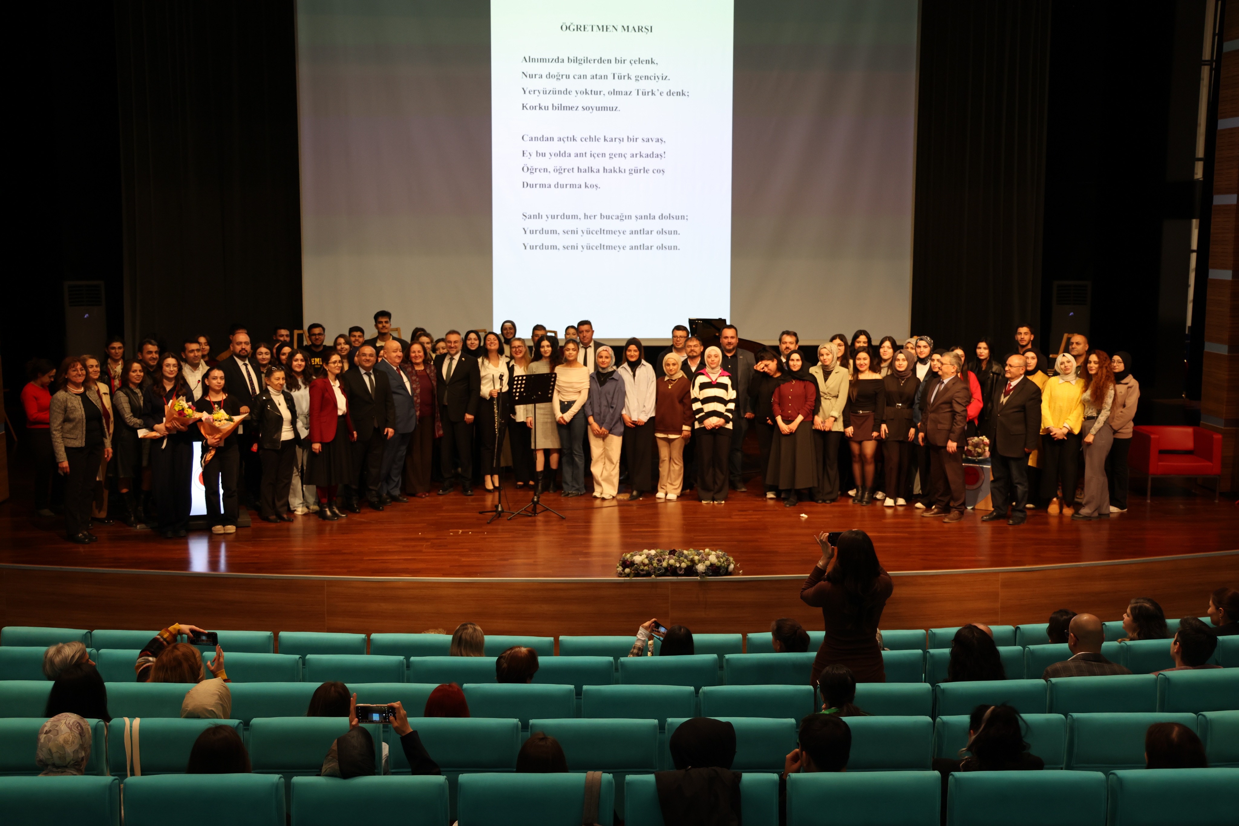 Her öğretmenin elinden gelenin en iyisini yapmaya gayret eden birer sanatçı olduğunu ifade eden Kılıçarslan, konuşmasının devamında, “Öğretmenlik; fedakârlığın, sabrın ve umudun adıdır. Sadece ders anlatmazsınız; hayatın içinde bir iz, bir ışık bırakırsınız. Bu yönüyle de öğretmenlik mesleği sadece bir kariyer değil, bir yaşam biçimidir. ” diyerek öğretmenlik mesleğinin kutsallığının altını çizdi.