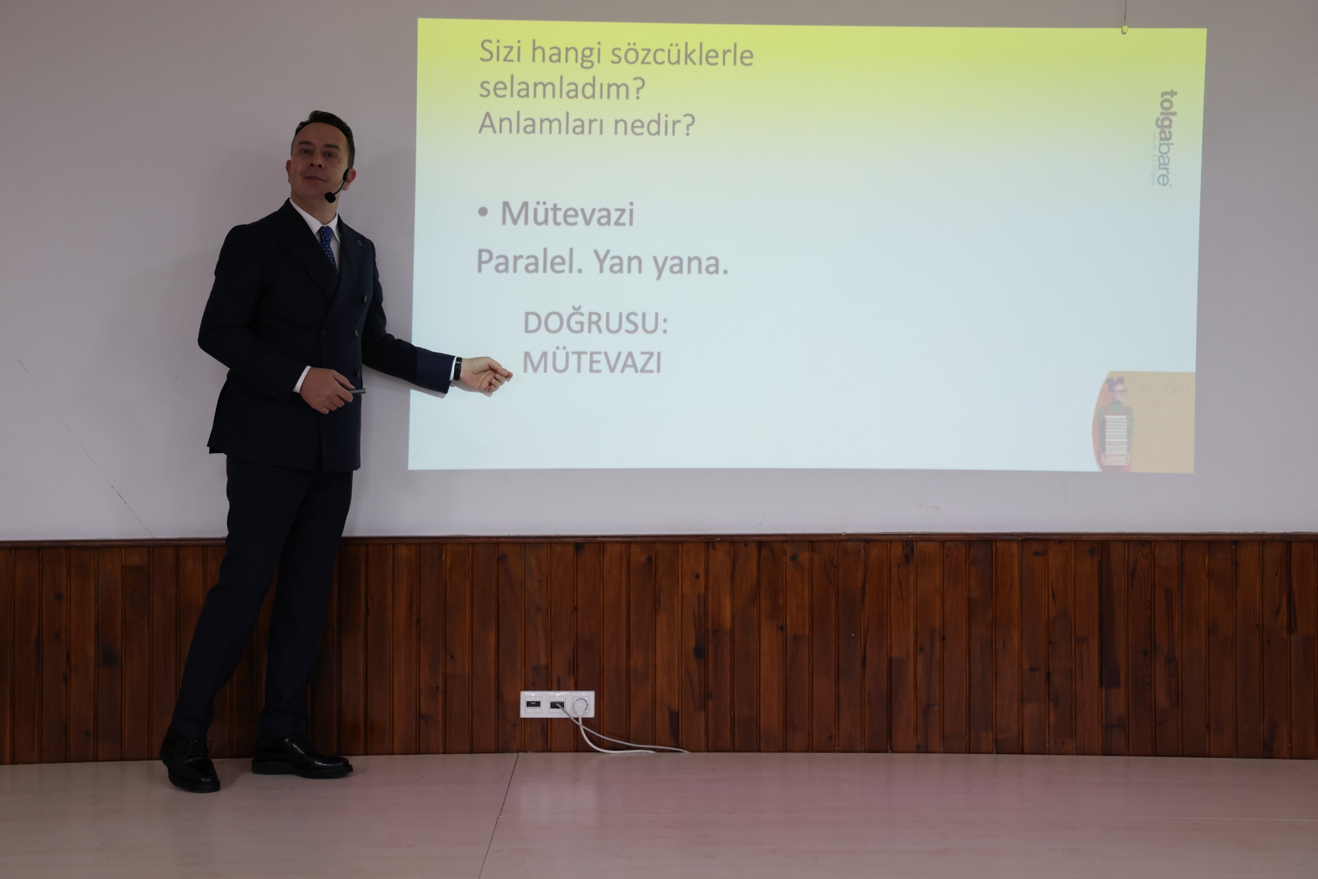 Türkçemiz, bizim millî kimliğimizin, kültürel birikimimizin ve ortak hafızamızın en değerli taşıyıcısıdır. İşte bu bilinçle, doğru konuşma tekniklerini öğrenmek, Türkçeyi daha etkili, daha anlaşılır ve daha özenli kullanabilmenin yollarını keşfetmek amacıyla bölümümüz ve Kariyer merkezi işbirliğiyle 9 Ekim 2025 tarihinde "Haydi Türkçe Konuşalım" başlıklı diksiyon ve iletişim etkinliği düzenlendi. Öğrencilerimizin yoğun ilgi gösterdiği etkinlik, “Kitabım Eğitime Dönüşsün” projesi kapsamında düzenlenmiştir. Bu anlamlı proje, Ocak 2023’ten bu yana Türkiye’nin dört bir yanında on binlerce gence ücretsiz eğitim ulaştırdı. Projeye emek veren herkese, projeden öğrencilerimizin de faydalanmasını sağlayan bölüm başkanımız Dr. Öğretim Üyesi Esra Elmacıoğlu'na ve özellikle bu projenin fikir öncüsü, yürütücüsü değerli eğitmen Sayın Tolga Bare’ye içten teşekkürlerimizi sunuyoruz. Kendisini üniversitemizde ağırlamaktan büyük bir mutluluk duyduk.