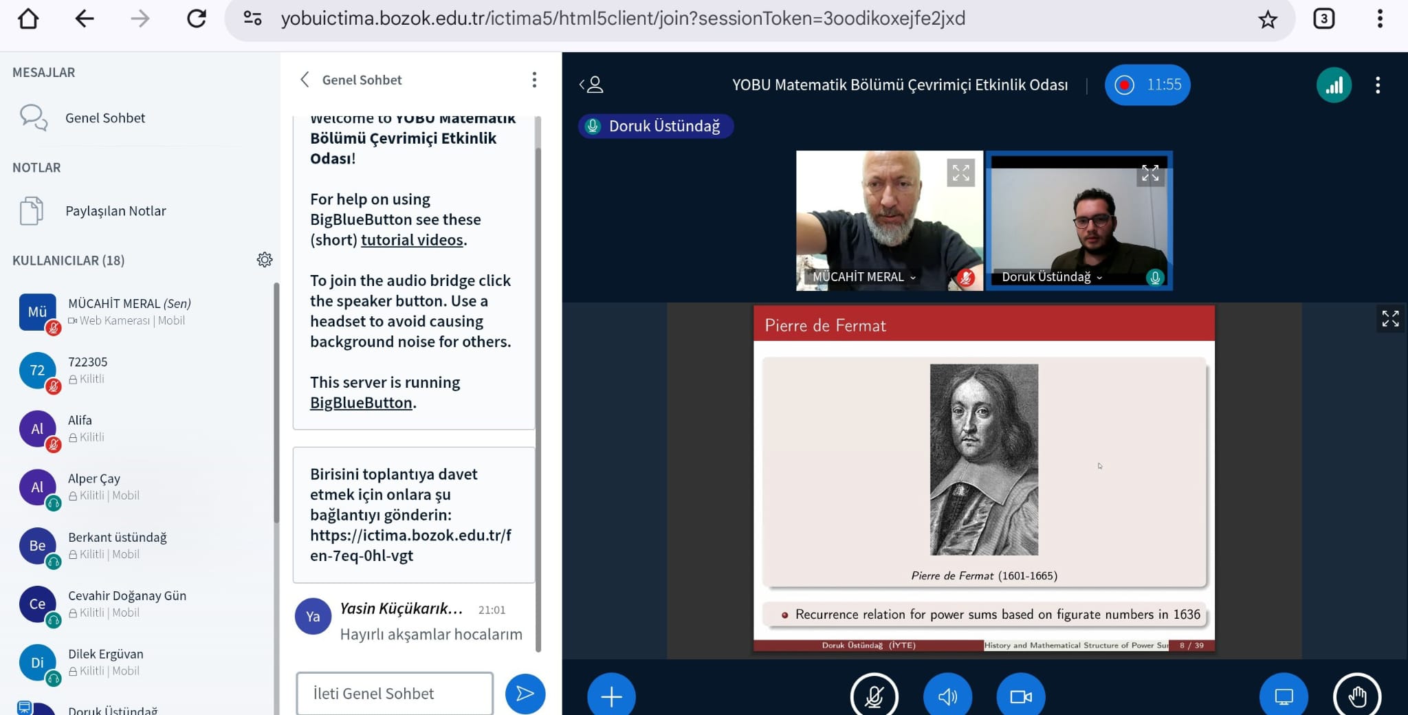 YOZGAT BOZOK ÜNİVERSİTESİ, FEN EDEBİYAT FAKÜLTESİ, MATEMATİK BÖLÜMÜ GENEL SEMİNERLERİ