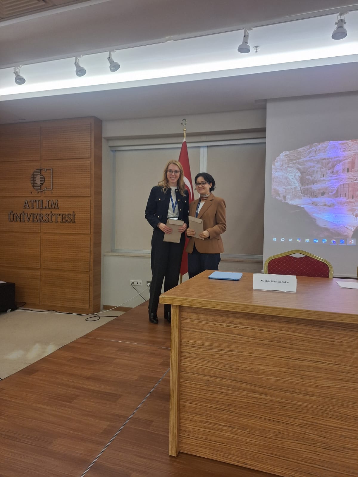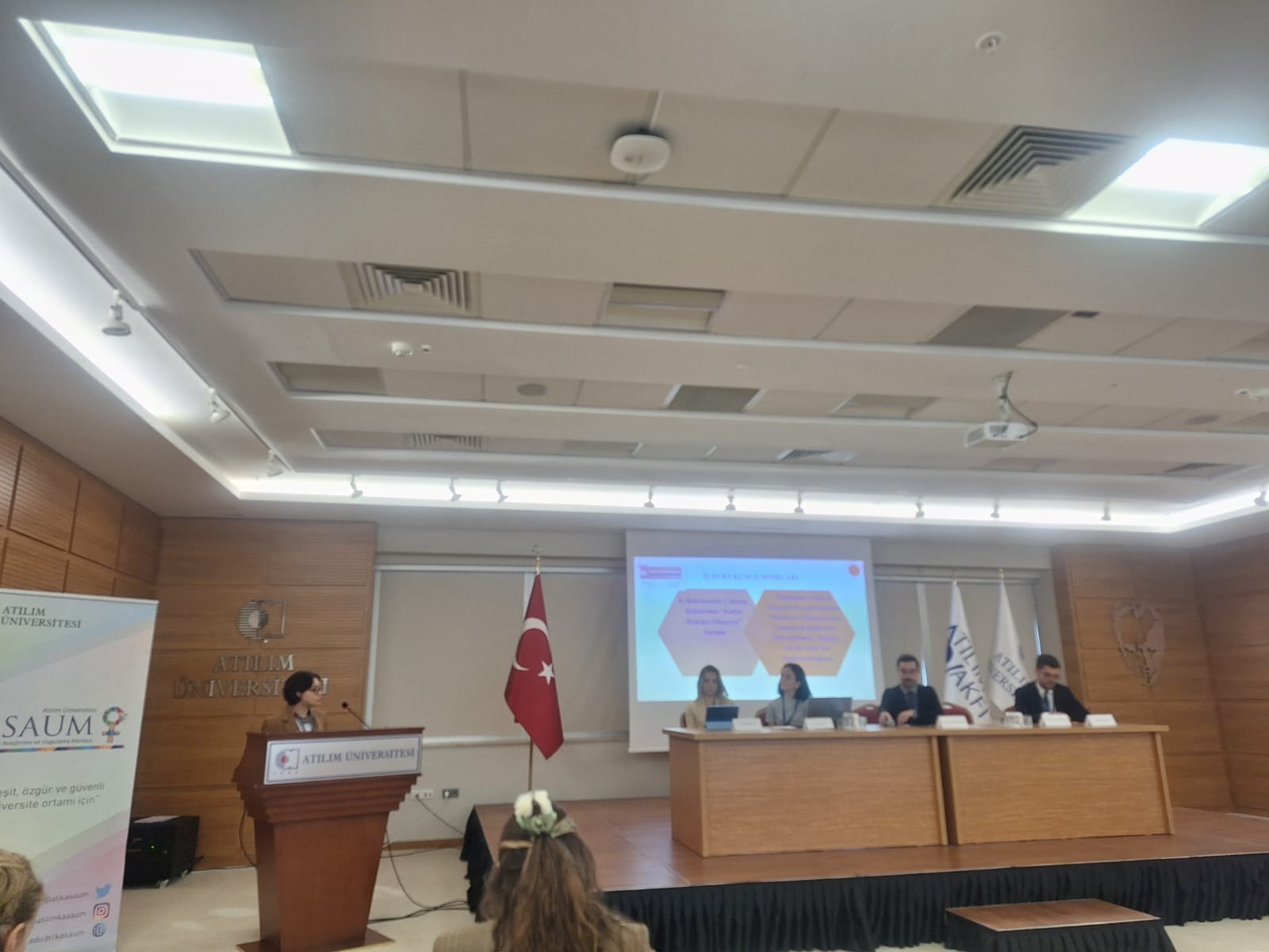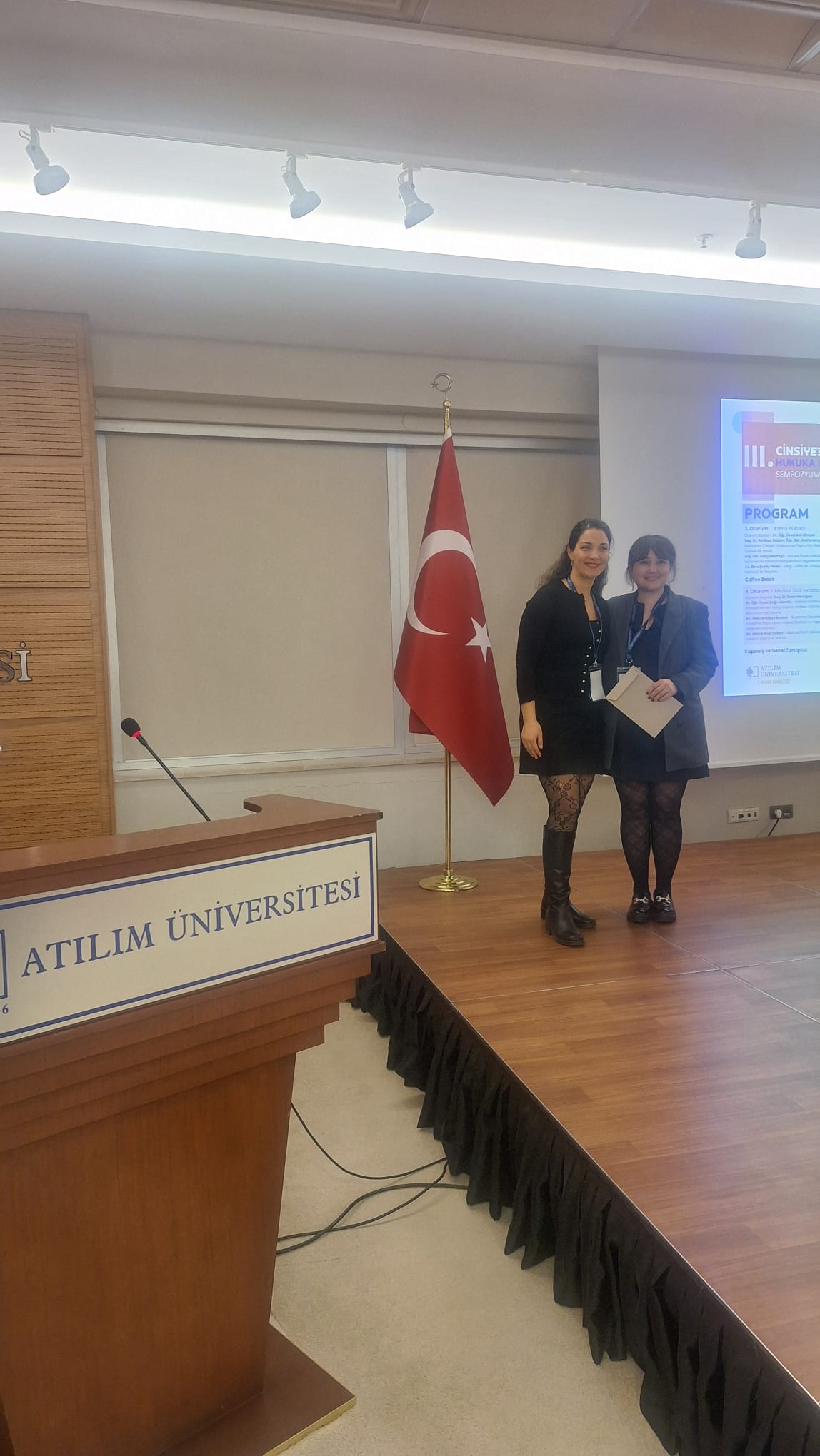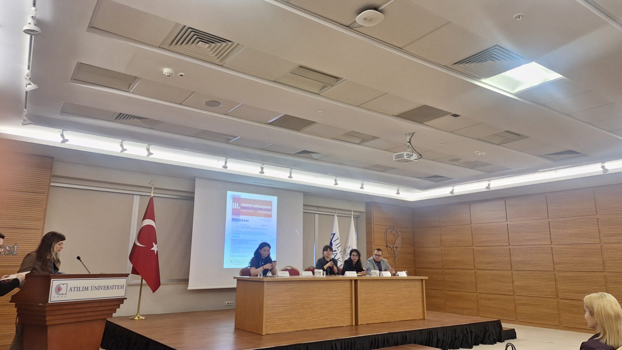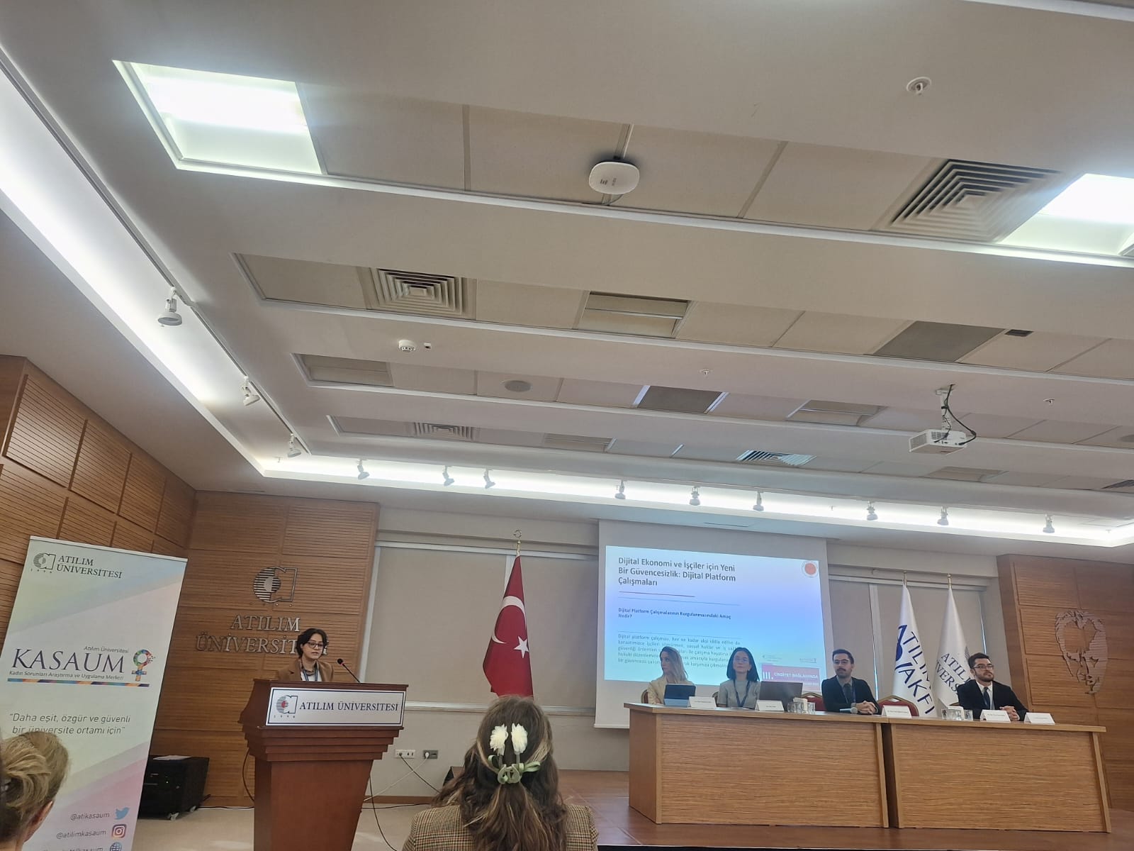Hukuk Fakültesi öğretim üyelerimiz, Dr. Öğr. Üyesi A. Aslı Şimşek Öner ve Dr. Öğr. Üyesi Nazlı Sağlam 25 Kasım 2025 tarihinde Atılım Üniversitesi Hukuk Fakültesi ve KASAUM işbirliğinde düzenlenen “III. Cinsiyet Bağlamında Hukuka Eleştirel Bakış” sempozyumuna katılmıştır. Dr. Öğr. Üyesi A. Aslı Şimşek Öner Sempozyumun “Kamu Hukuku” oturumunda oturum başkanı olarak görev alırken, Dr. Öğr. Üyesi Nazlı Sağlam sempozyumun iş hukuku oturumunda “Dijital Platform Çalışmalarında Toplumsal Cinsiyet Körlüğü: Kadın Emeği ve İş Hukukunun Sınırları” başlıklı tebliğ sunmuştur.