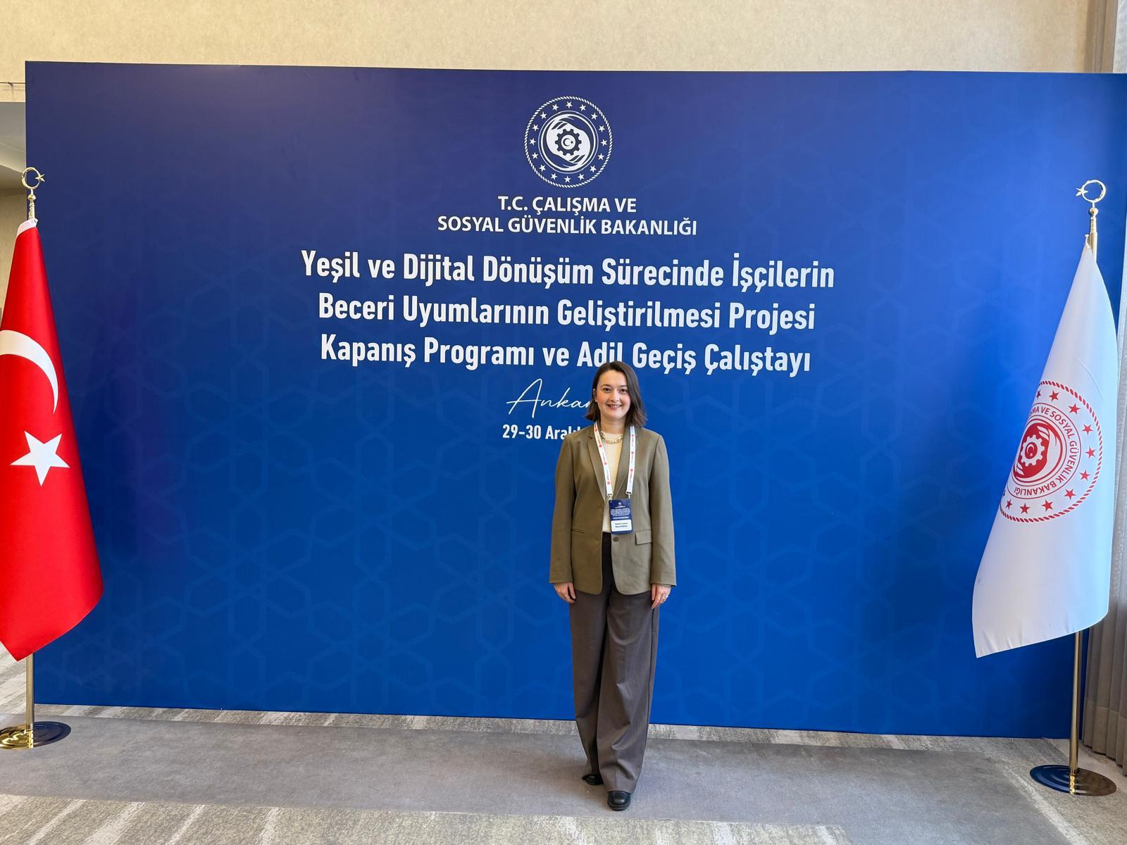 Fakültemiz öğretim elemanlarından Dr. İstemi Ceysu Dinç Ütükler, Çalışma ve Sosyal Güvenlik Bakanlığı'nın daveti üzerine 29-30 Aralık 2025 tarihleri arasında Ankara'da düzenlenen "Yeşil ve Dijital Dönüşüm Sürecinde İşçilerin Beceri Uyumlarının Geliştirilmesi Projesi Kapanış Programı ve Adil Geçiş Çalıştayı"na katılmış; proje çıktıları ve ülkemizde gerçekleştirilecek olan Taraflar Konferansı (COP31) öncesinde tamamlanması planlanan Adil Geçiş Politika Belgesi hakkında değerlendirmelerde bulunmuştur.