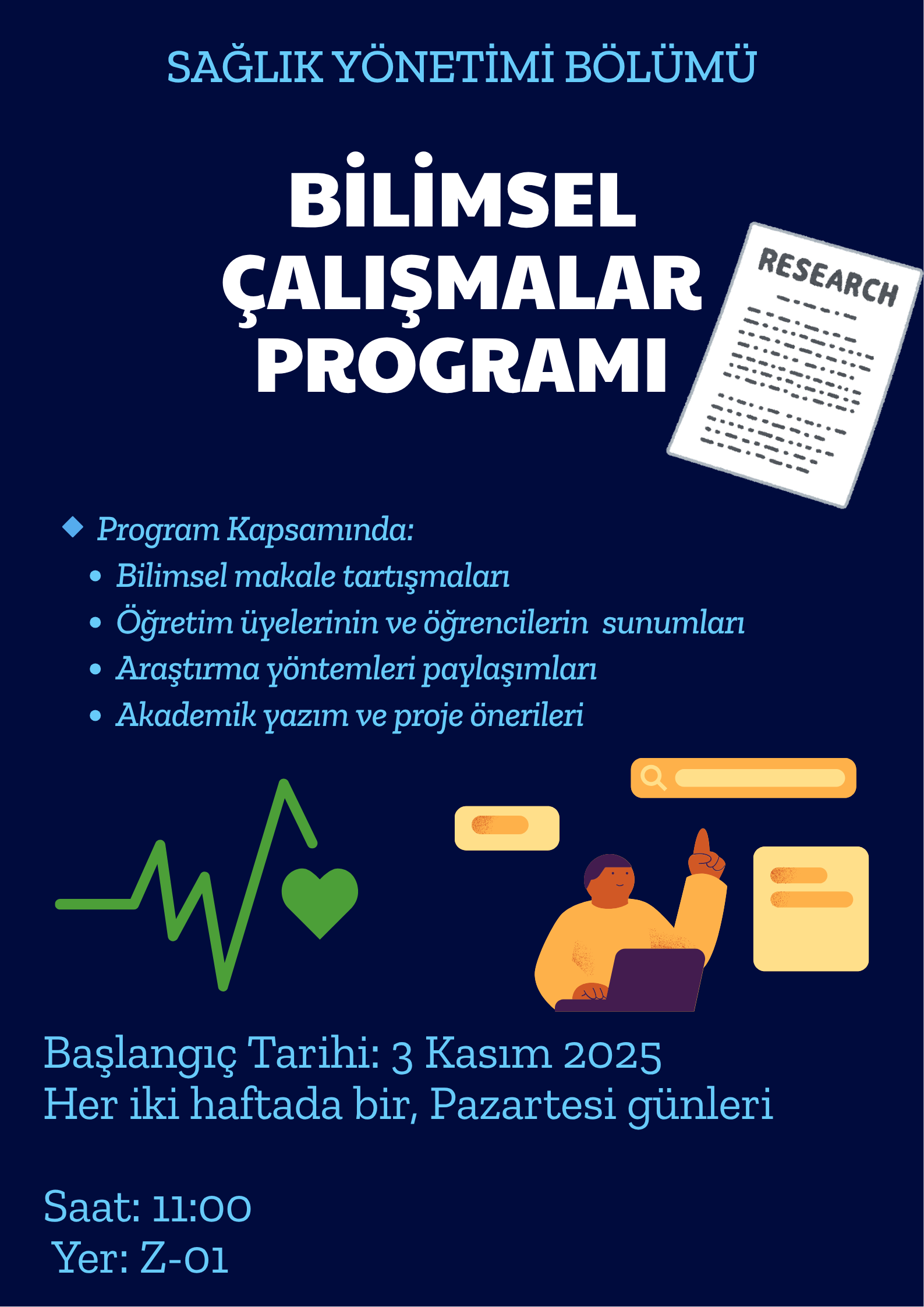 Bölümümüz tarafından yürütülecek “Bilimsel Çalışmalar Programı” kapsamında, 3 Kasım 2025 tarihinden itibaren her iki haftada bir pazartesi günü saat 11.00’de düzenli olarak toplantılar gerçekleştirilecektir.