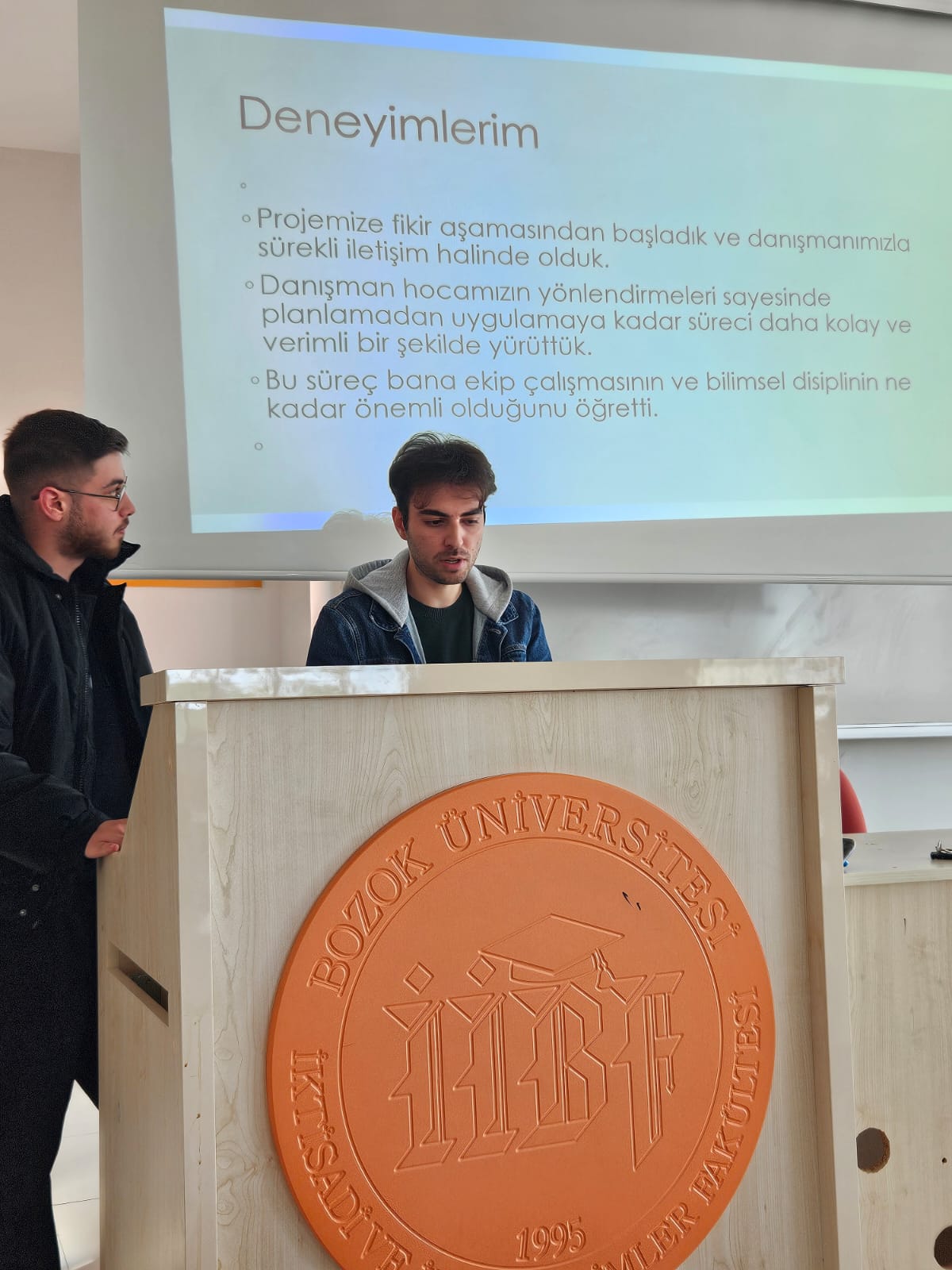Etkinlikte Doç. Dr. Ayhan Durmuş, Dr. Öğr. Üyesi Gamze Kutlu Örün ve Dr. Öğr. Üyesi Sema Dalkılıç proje başvurusu, yürütülmesi ve değerlendirme süreçleri hakkında katılımcılara detaylı bilgiler sundular. Ayrıca Batuhan Akar, Ali Haydar Zorlu ve Şebnem Gürbüz, daha önce yürüttükleri projelere ilişkin deneyimlerini paylaşarak öğrencilere önemli tavsiyelerde bulundular.