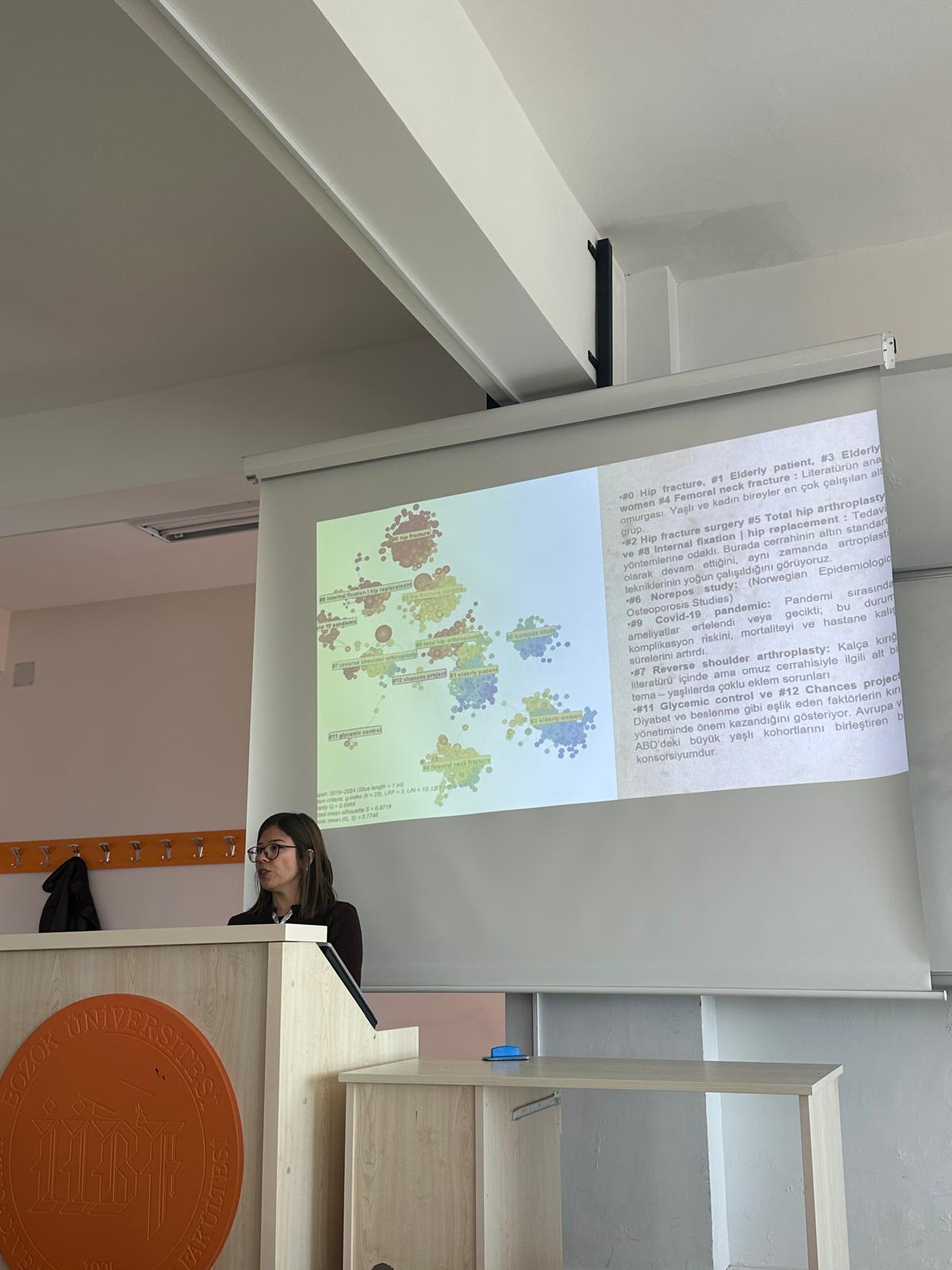 Seminerde, kalça kırıkları üzerine dünya genelinde yapılmış bilimsel araştırmaların Citespace bibliyometrik analiz yöntemi ile incelendiği kapsamlı bir çalışma sunuldu.