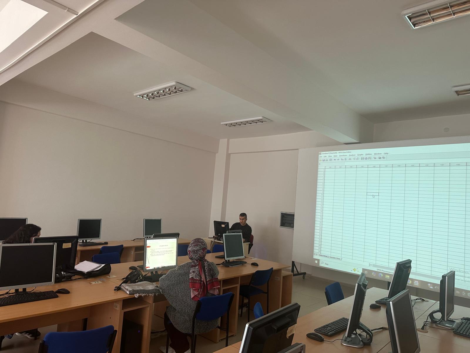 Sağlık Yönetimi Bölümü lisans programında yer alan SAY246 – Sağlık Yönetiminde İstatistik II dersi kapsamında yürütülen LAB uygulamalarında, öğrenciler SPSS programı ile veri analizi çalışmalarını uygulamalı olarak gerçekleştirmektedir.