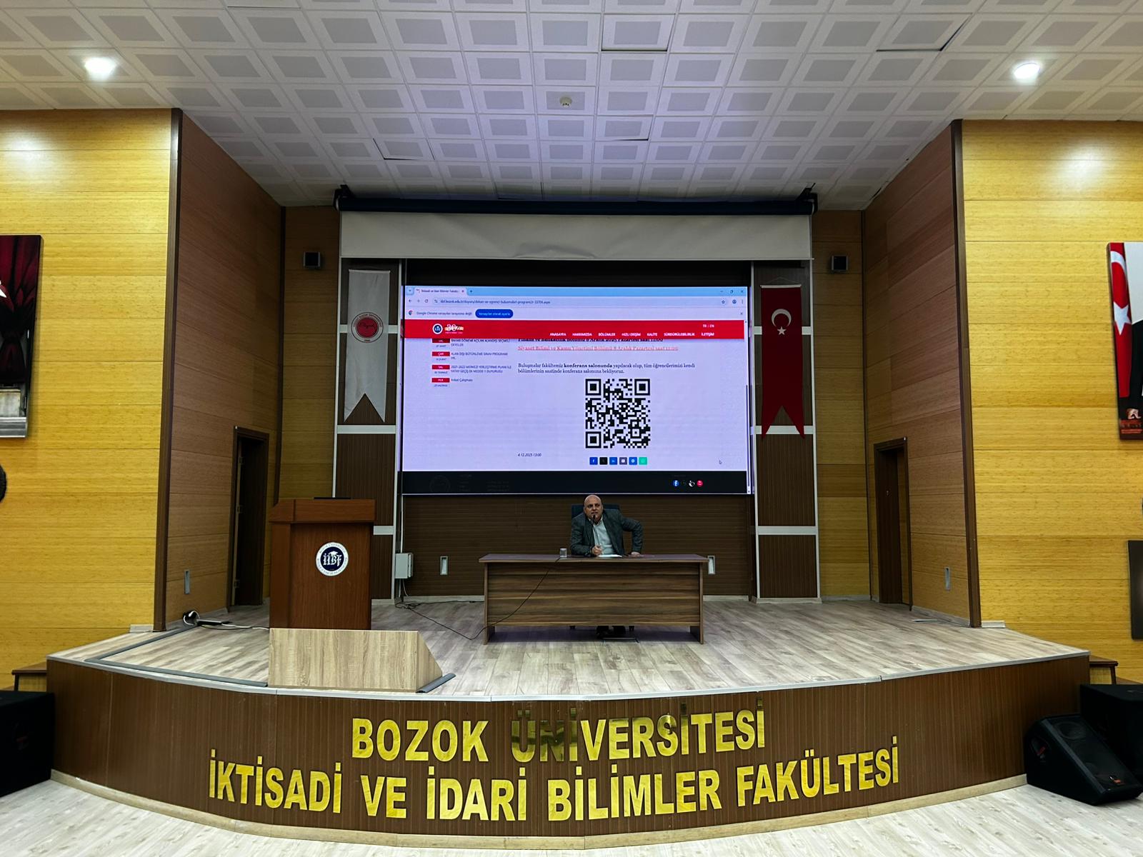 İktisadi ve İdari Bilimler Fakültesi’nde gelenek hâline getirilen “Dekan & Öğrenci Buluşmaları” programının yeni oturumu, 08 Aralık 2025 tarihinde saat 11.00’de fakültemiz konferans salonunda düzenlendi. Toplantıya, Fakülte Dekanımız Prof. Dr. İbrahim Doğan başkanlık etti.