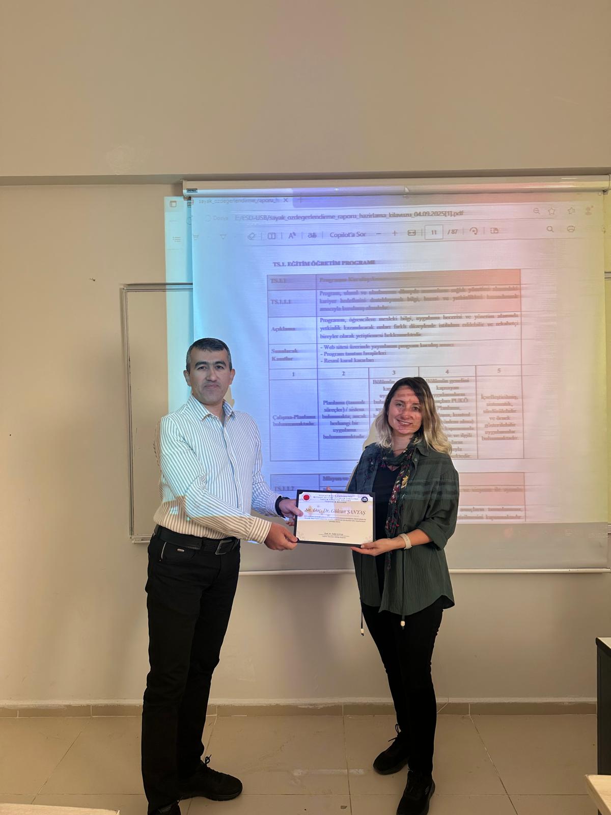 Yozgat Bozok Üniversitesi Sağlık Yönetimi Bölümü tarafından yürütülen Stratejik Plan Hazırlık Çalışmaları kapsamında göstermiş olduğu özverili katkı ve emeklerinden dolayı Doç. Dr. Gülcan Şantaş’a teşekkür belgesi takdim edilmiştir.