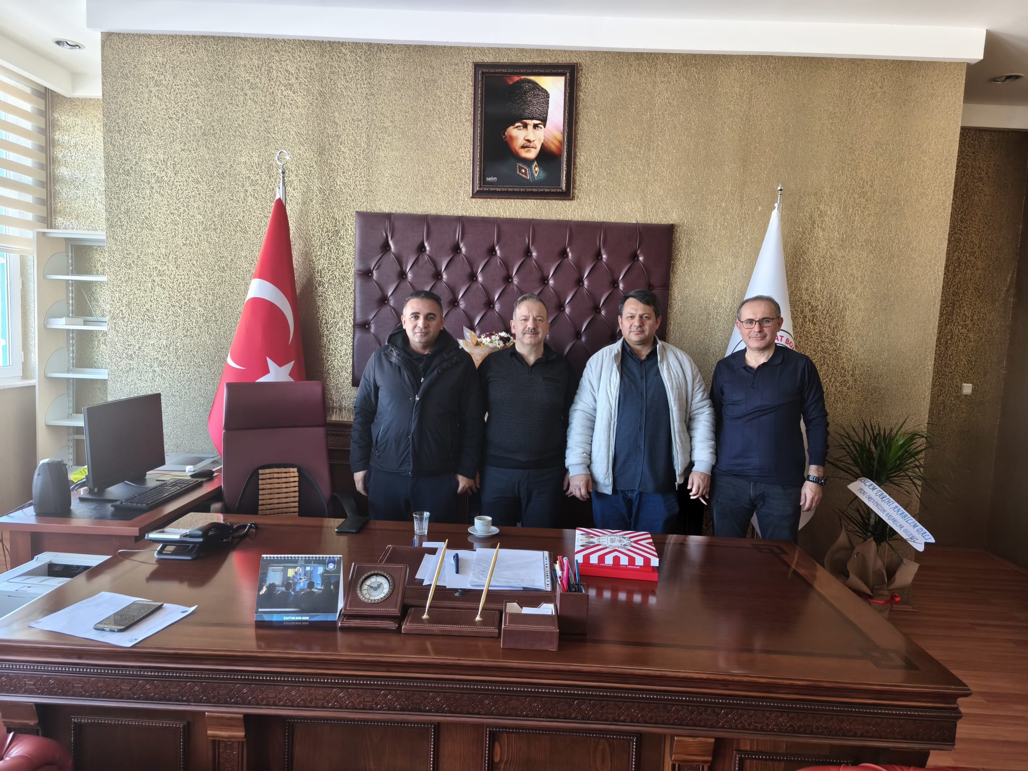 Yozgat Bozok Üniversitesi Lisansüstü Eğitim Enstitüsü personelinden Ahmet Topal ve Necip Akyol, fakültemize yeni atanan Dekanımız Prof. Dr. İsmail Pırlanta’yı makamında ziyaret ederek hayırlı olsun dileklerini ilettiler.