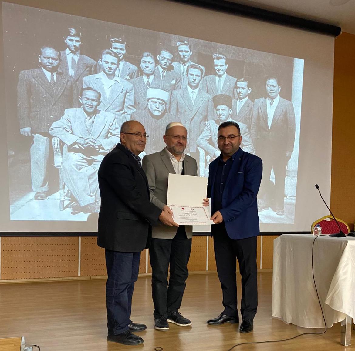 Programın ardından Fakülte Dekanı Prof. Dr. Abdulkadir Dündar, Kamil Büyüker’e belge ve hediye takdim ederek teşekkürlerini iletti. Dekan Dündar, programın gerçekleştirilmesindeki katkılarından dolayı Cami ve Gençlik Topluluğu Danışmanı Öğr. Gör. Yasin Cenan’a da teşekkürlerini ifade etti.