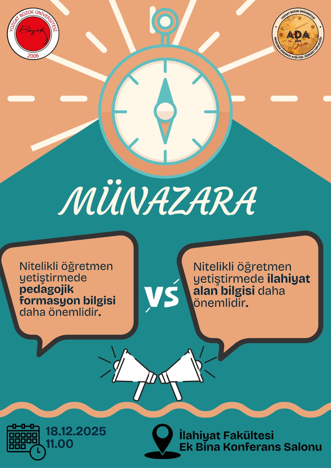 Fakültemiz "Akademik Düşünce Topluluğu" (ADA) ve son sınıf öğrencilerimizin organize ettiği münazaraya katılımlarınızı bekliyoruz.