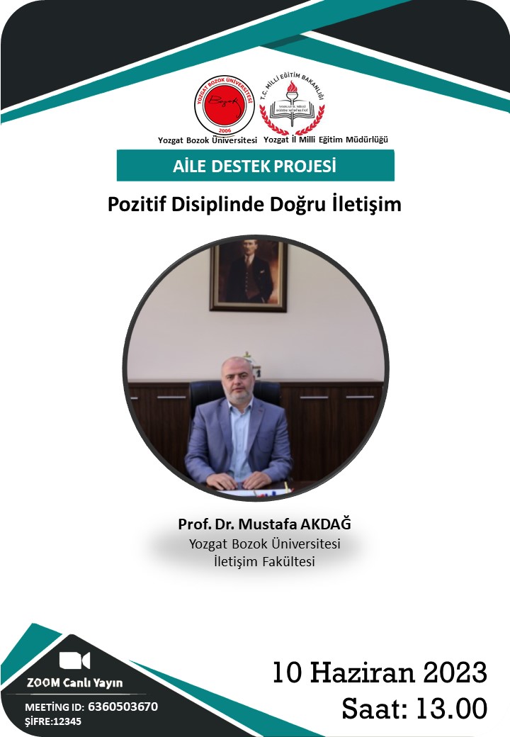 Fakültemiz tarafından yürütülen "Çocuklara Bilişsel ve Duyuşsal Becerilerin Kazandirilmasinda Pozitif Disiplin Anlayışının Yeri ve Onemi" konulu Aile Destek Projemizin 3. söyleşisi gerçekleştirildi. Söyleşi Yozgat Bozok Üniversitesi İletişim Fakültesi Öğretim Üyesi Prof. Dr. Mustafa AKDAĞ hocamız tarafından gerçekleştirildi. Kendisine teşekkür ediyoruz. İlgilenenler proje söyleşilerini Youtube proje kanalı üzerinden takip edebilirler.