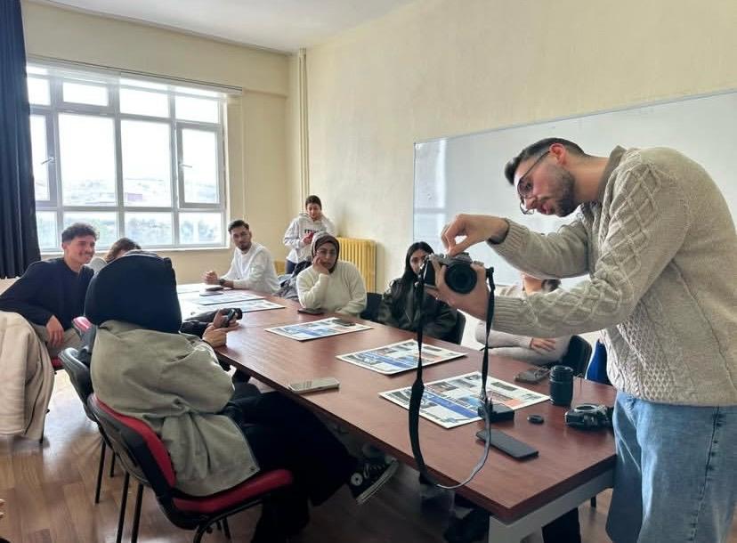 Bölümümüzde düzenlenen Canva AI Design ve Fotoğrafçılık Akran Eğitimleri başarıyla tamamlandı. Bölümümüz öğrencileri Osman Çiçek Canva AI Design'ı uygulamalı olarak anlatırken, Emirhan Ece ise fotoğrafçılığın gazetecilik boyutunu ISO, diyafram, enstantane ve objektif türleri gibi teknik detaylarla ele aldı; yakın plan, uzak plan ve portre çekimlerini uygulamalı olarak gösterdi.