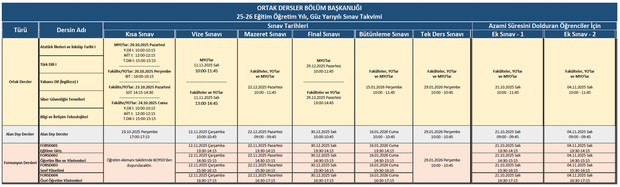 Sınav takvimini