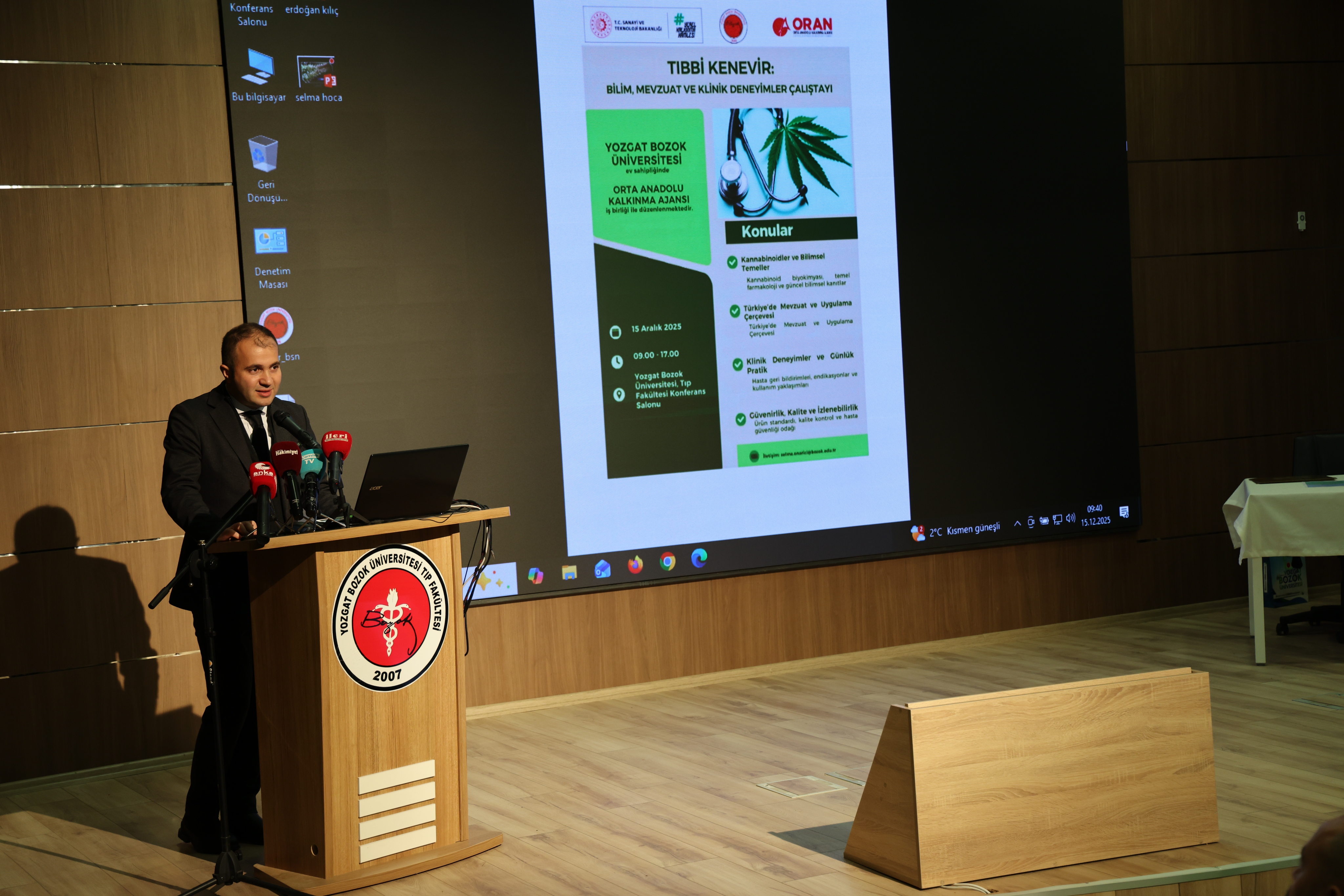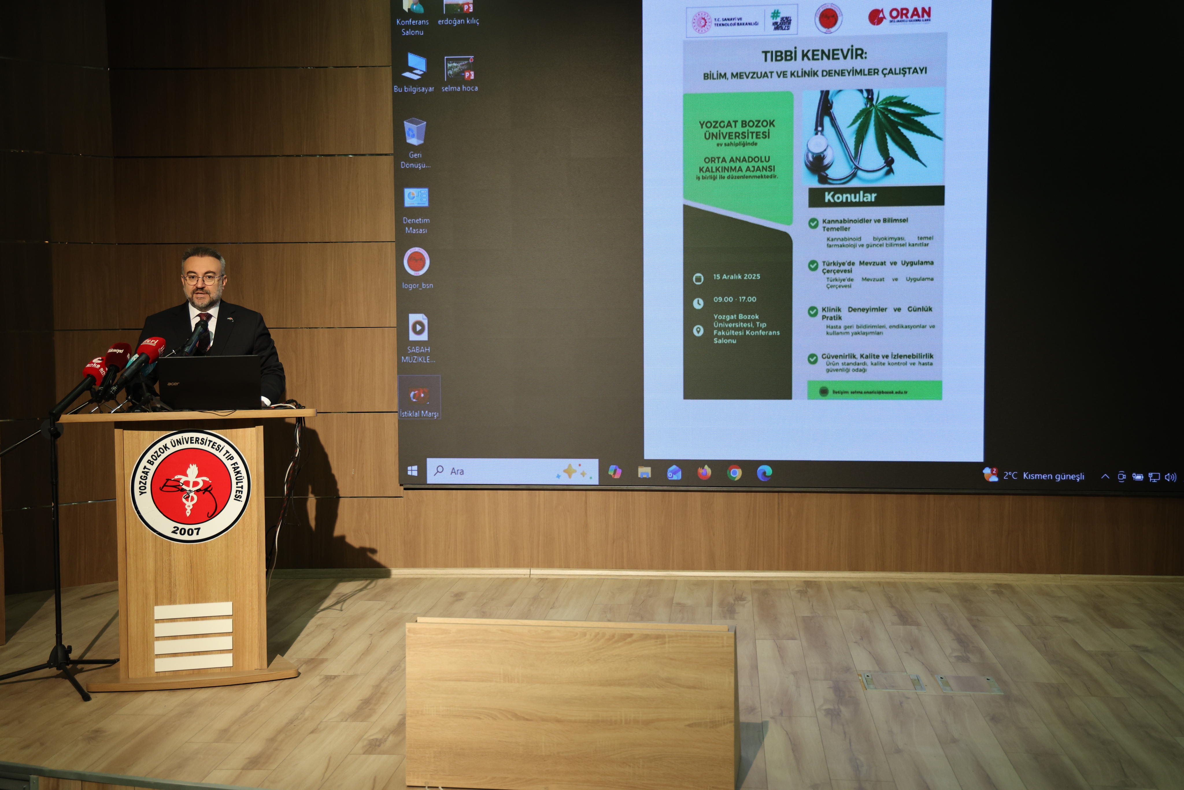 Üniversitemiz ev sahipliğinde gerçekleştirilen çalıştayda; kannabinoidlerin bilimsel temelleri kapsamında biyokimyası, temel farmakolojisi ve güncel bilimsel kanıtlar ele alınırken, Türkiye’de mevzuat ve uygulama çerçevesi başlığı altında üretimden kullanıma uzanan yasal süreçler değerlendirildi. Çalıştayda klinik deneyimler ve günlük pratik kapsamında hasta geri bildirimleri, endikasyonlar ve kullanım yaklaşımları paylaşılırken, güvenilirlik, kalite ve izlenebilirlik başlığında ürün standartı, kalite kontrol süreçleri ve hasta güvenliği konularında da bilgiler aktarıldı.