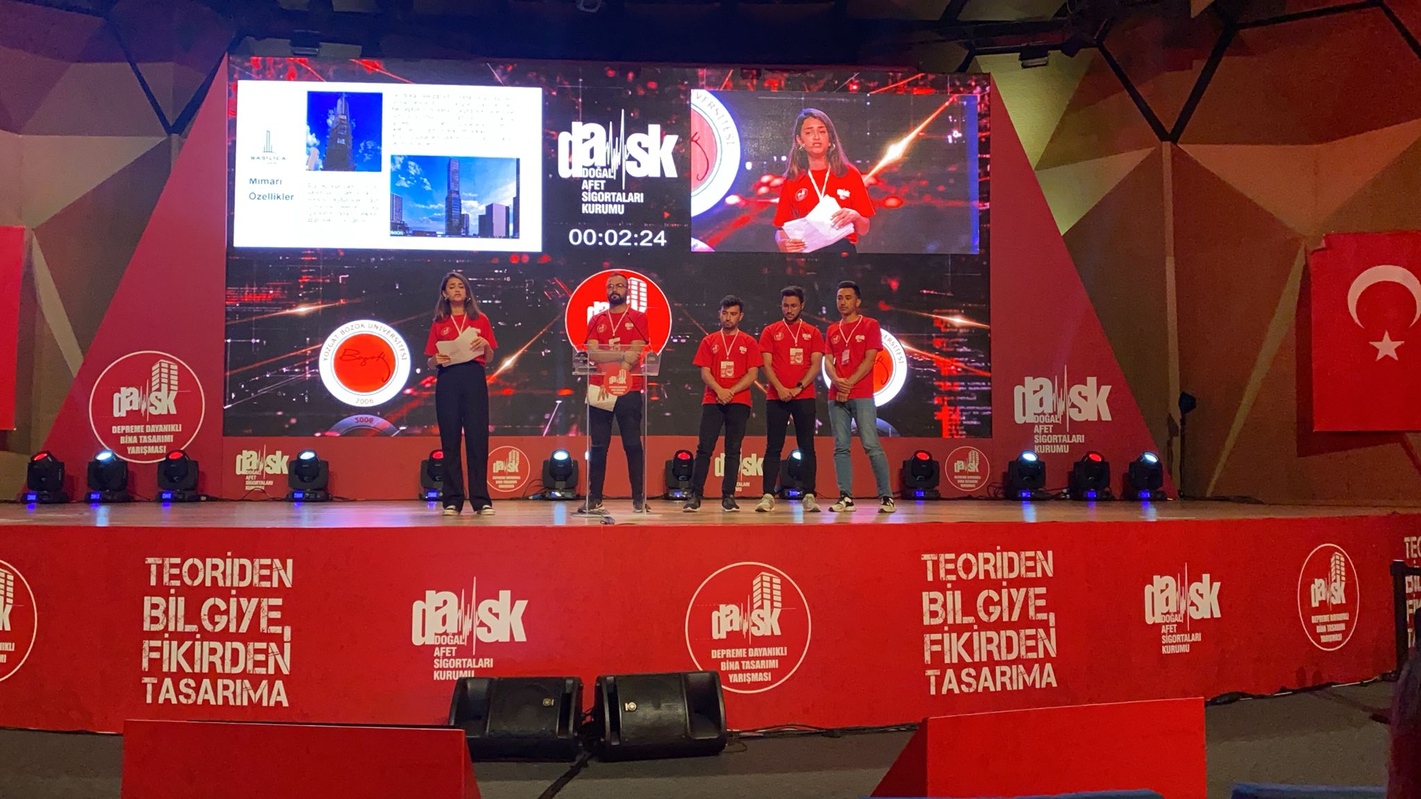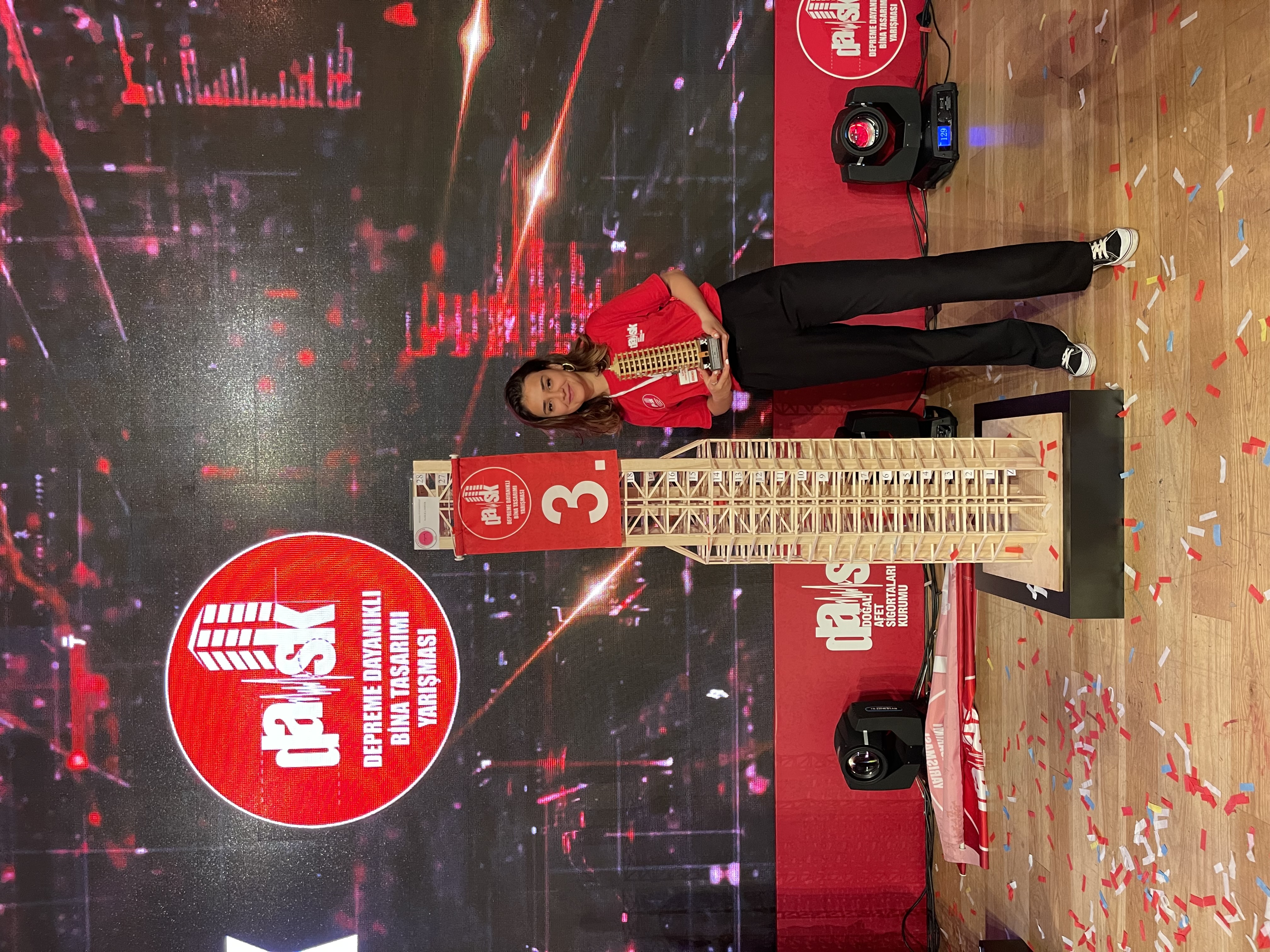 Mimarlık bölümü öğrencimiz Elif Su Çabuk'un dahil olduğu proje ''Depreme Dayanıklı Bina Tasarımı Yarışması''nda üçüncülük ödülü kazanmıştır.