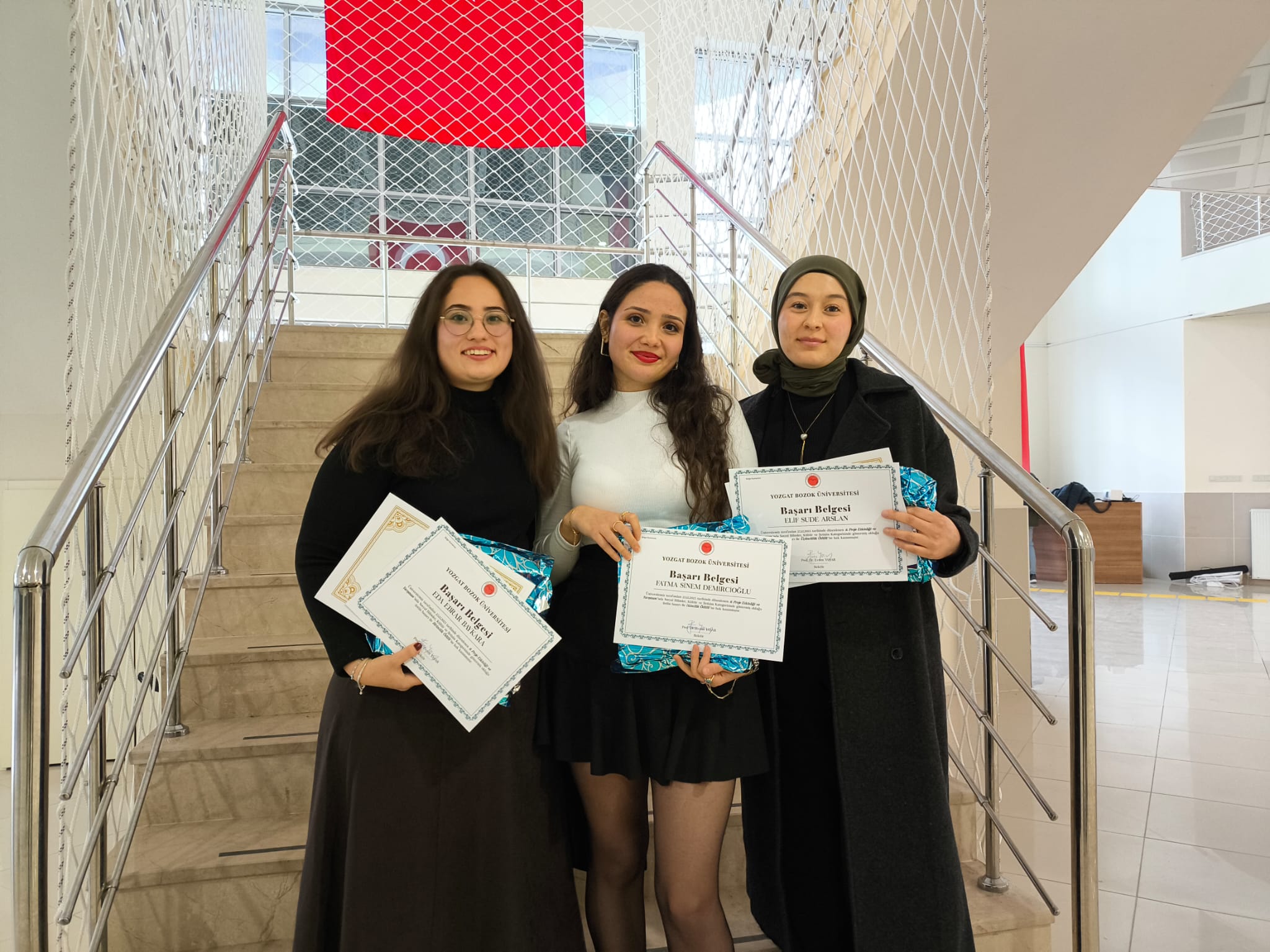 Sosyal Bilimler, Kültür ve İletişim kategorisinde, Doç. Dr. Erdinç Kalaycı danışmanlığında hazırlanan projelerle yarışmaya katılan öğrencilerimizden Eda Ebrar Baykara birincilik, Fatma Sinem Demircioğlu ikincilik ve Elif Sude Arslan üçüncülük ödülüne layık görülmüştür.