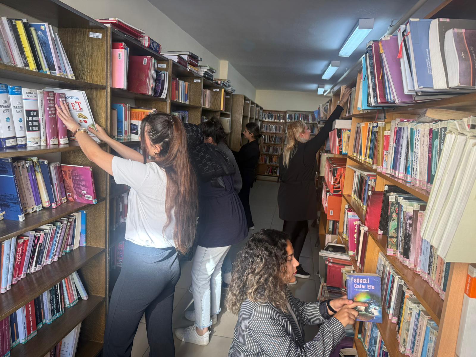 Etkinlikte öğrenciler, kütüphane raflarını düzenledi, kitapların sınıflandırılmasına destek oldu ve kütüphane ortamının daha düzenli ve erişilebilir hale gelmesi içina gönüllü olarak çalıştı.