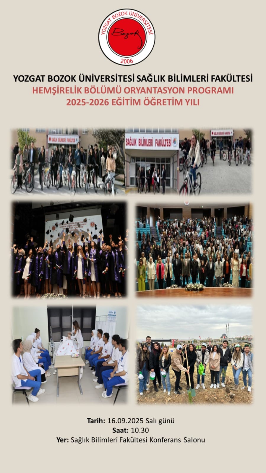 16.09.2025 tarihinde saat 10:30'da fakültemiz konferans salonunda birinci sınıf hemşirelik bölümü öğrencilerine yönelik oryantasyon eğitimi yapılacaktır. Bölümümüze yeni kayıt olan öğrencilerimizin katılımı beklenmektedir.