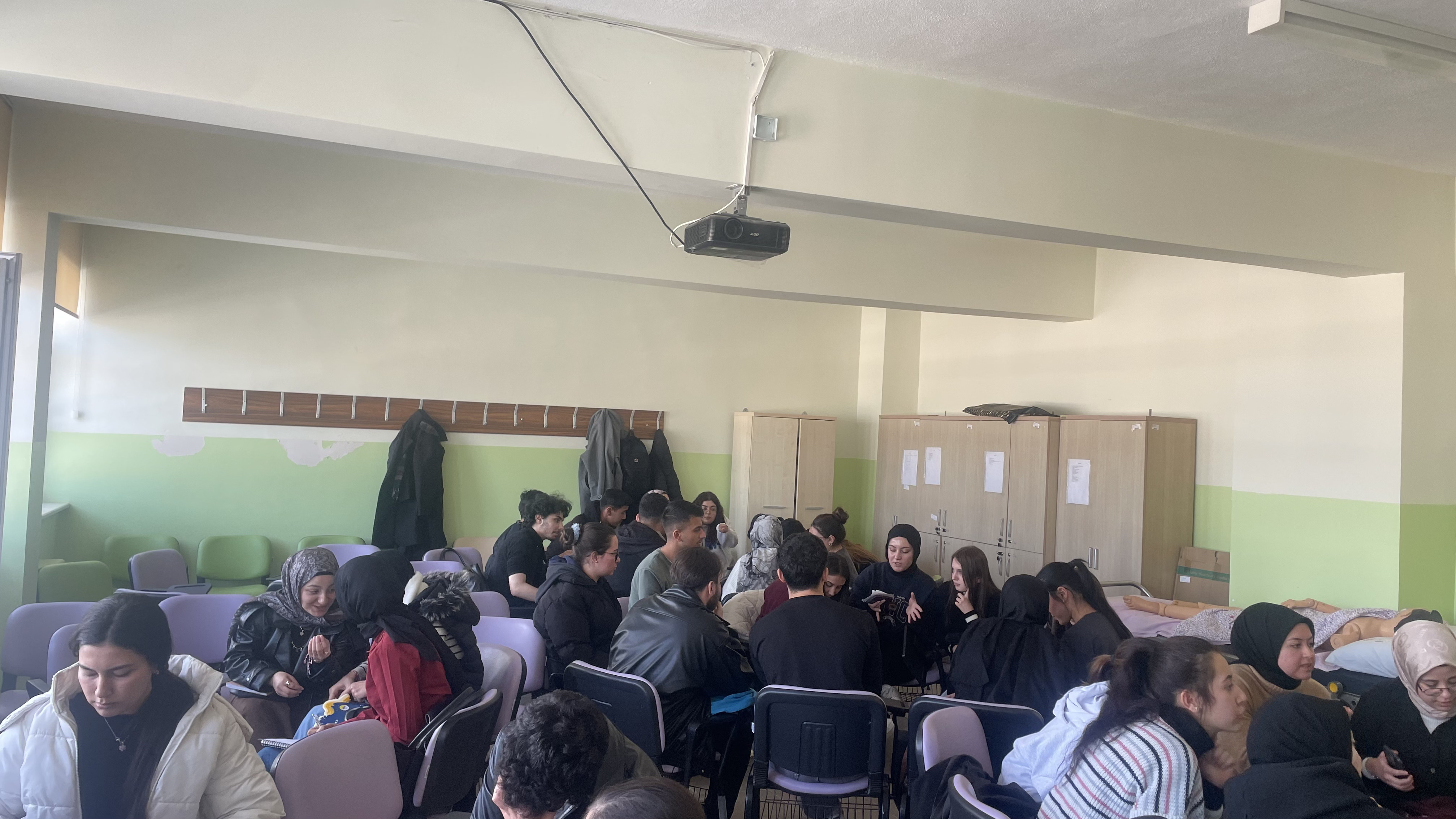 Sağlık Hizmetleri Meslek Yüksekokulu 1. Sınıf İlk ve Acil Yardım Programı öğrencileri, Acil Sağlık Hizmetleri II Uygulama dersi kapsamında eğitimlerine vaka tartışmaları eşliğinde devam ediyor. Ders sorumlusu Öğr. Gör. Rukiye Dikmen yürütücülüğünde gerçekleştirilen uygulamalarda öğrenciler, gruplara ayrılarak farklı acil sağlık senaryoları üzerinden değerlendirmelerde bulunuyor.