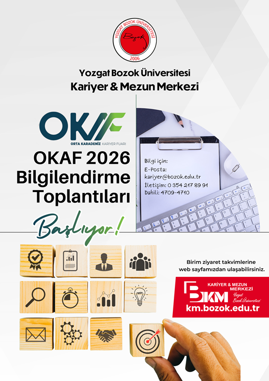 Kariyer Merkezi toplantıları 25.02.2026 saat 11.00'da okulumuz konferans salonunda yapılacaktır.