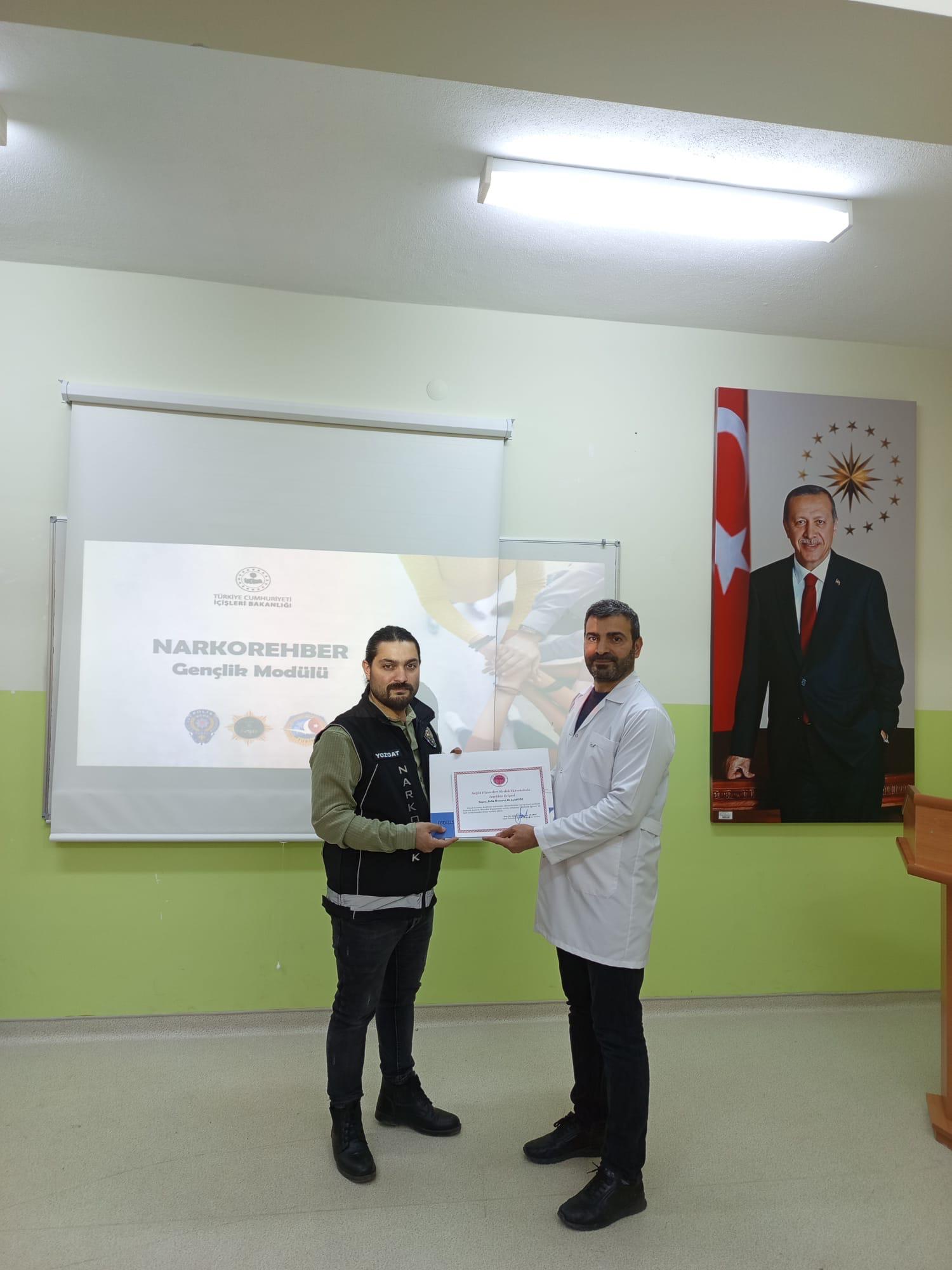 Yozgat İl Emniyet Müdürlüğü Narkotik Suçlarla Mücadele Şube Müdürlüğü tarafından Yüksekokulumuz öğrencilerine yönelik uyuşturucu ve uyarıcı maddeler hakkında bilgilendirici bir eğitim gerçekleşmiştir.