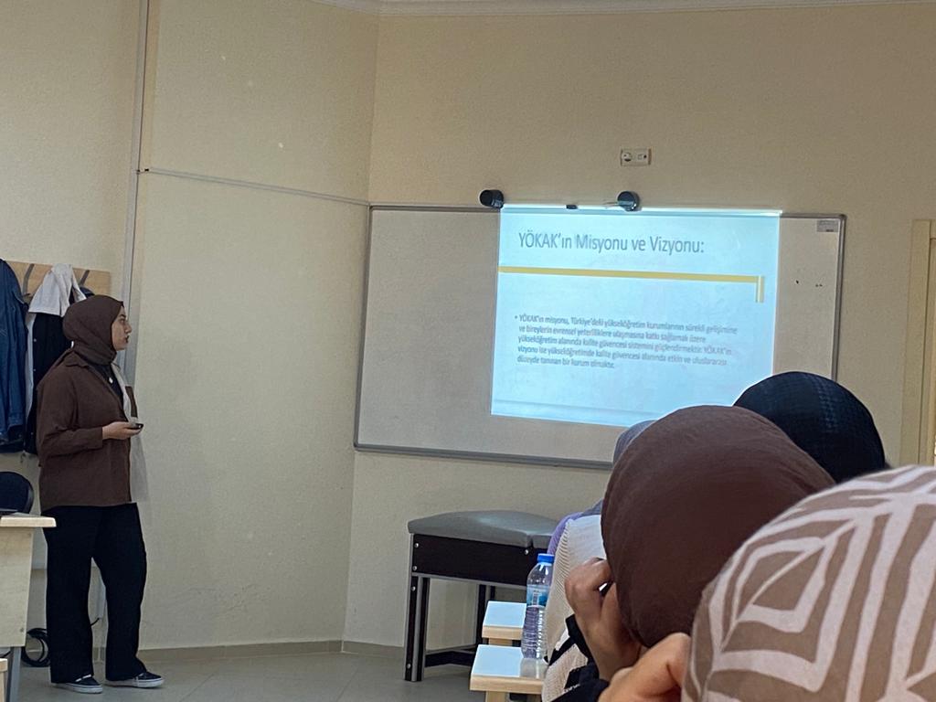Yüksekokulumuzda Kalite Komisyonu Öğrenci Temsilcisi Kadriye Gümüştaş, kurumsal akreditasyon programı kapsamında öğrencilere yönelik bir dizi toplantı düzenledi. Bu toplantılar, öğrencilerin akreditasyon süreci hakkındaki sorularını yanıtlamak ve onları bilgilendirmek amacıyla 24, 25 ve 27 Ekim tarihlerinde gerçekleştirildi.