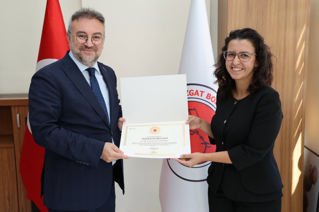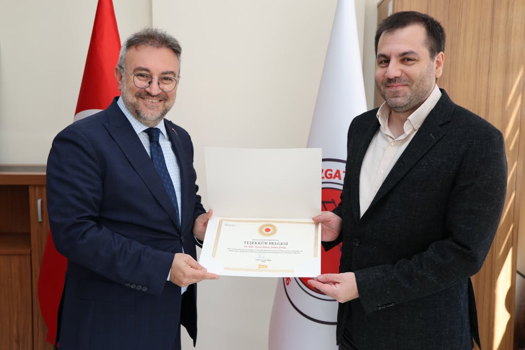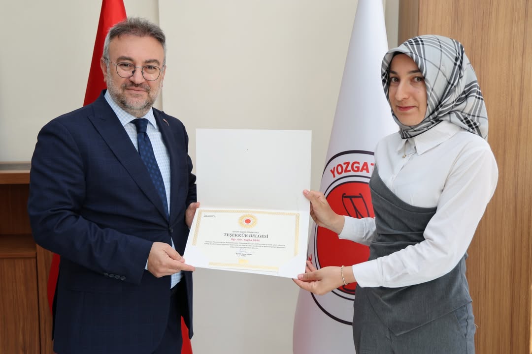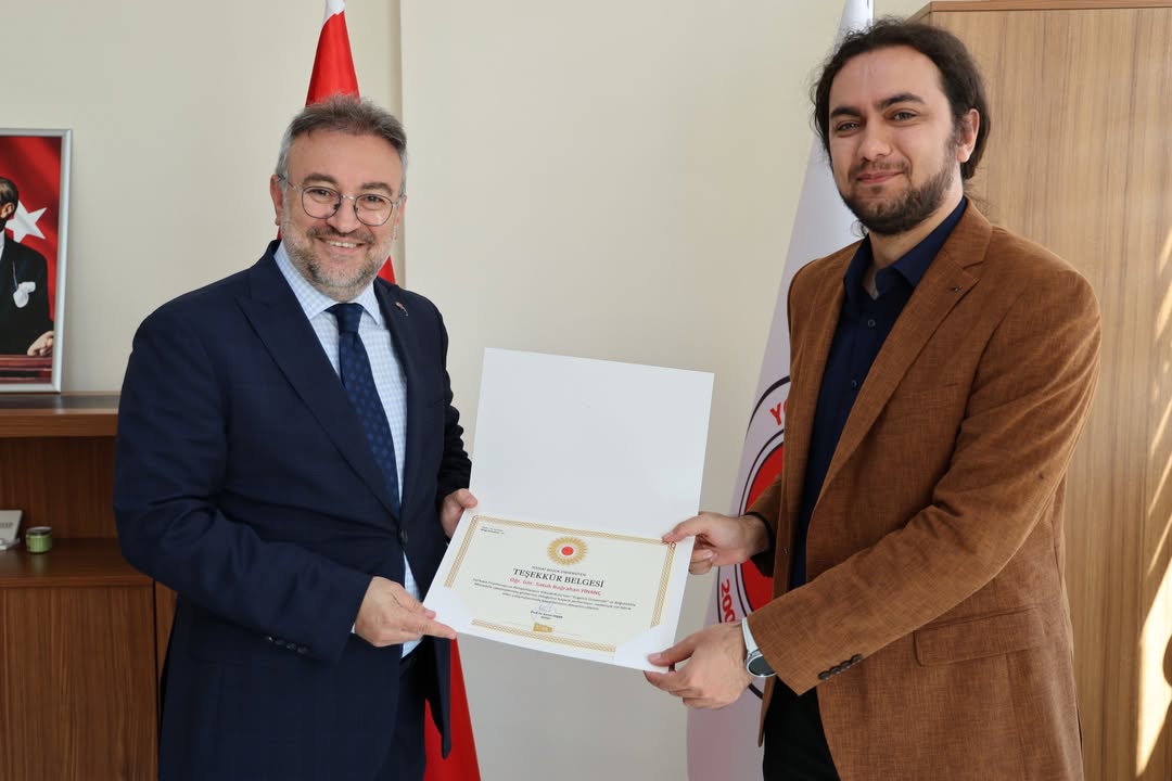 Rektörümüz Prof. Dr. Evren Yaşar Yüksekokulumuzda akademik performans göstergelerine göre üstün başarı sergileyen akademisyenlerimize teşekkür belgelerini takdim etti. Rektörümüz, akademisyenlerimizin bilimsel üretkenlikleri ve üniversitemizin akademik vizyonuna sundukları katkılardan dolayı duyduğu memnuniyeti ifade ederek kendilerini tebrik etti, başarılarının artarak devam etmesini diledi.