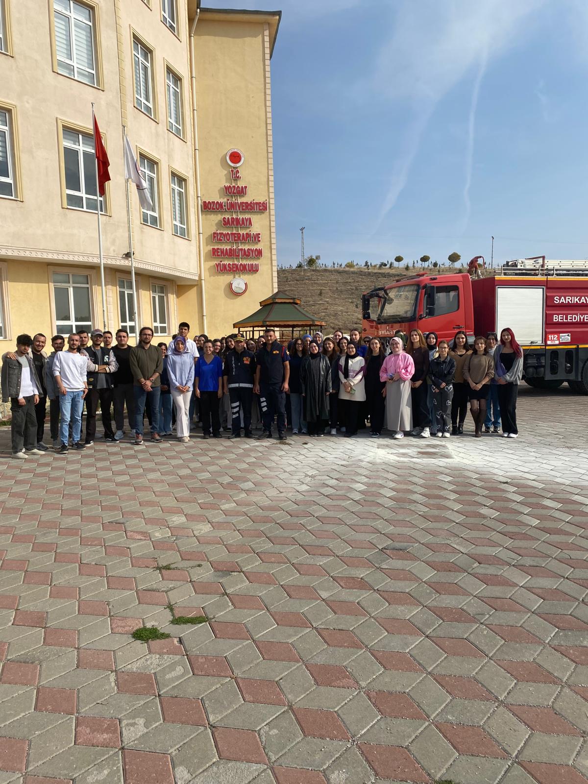 Yüksekokulumuzda, Sarıkaya Belediyesi İtfaiye Müdürlüğü iş birliğiyle yangın söndürme tatbikatı gerçekleştirildi.