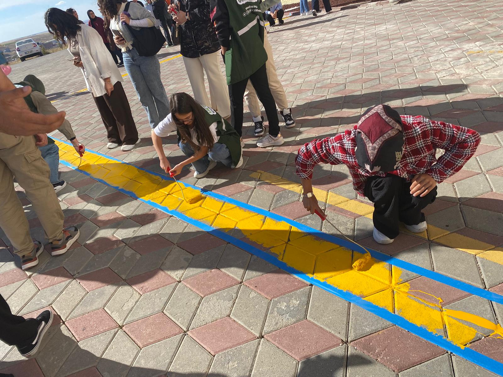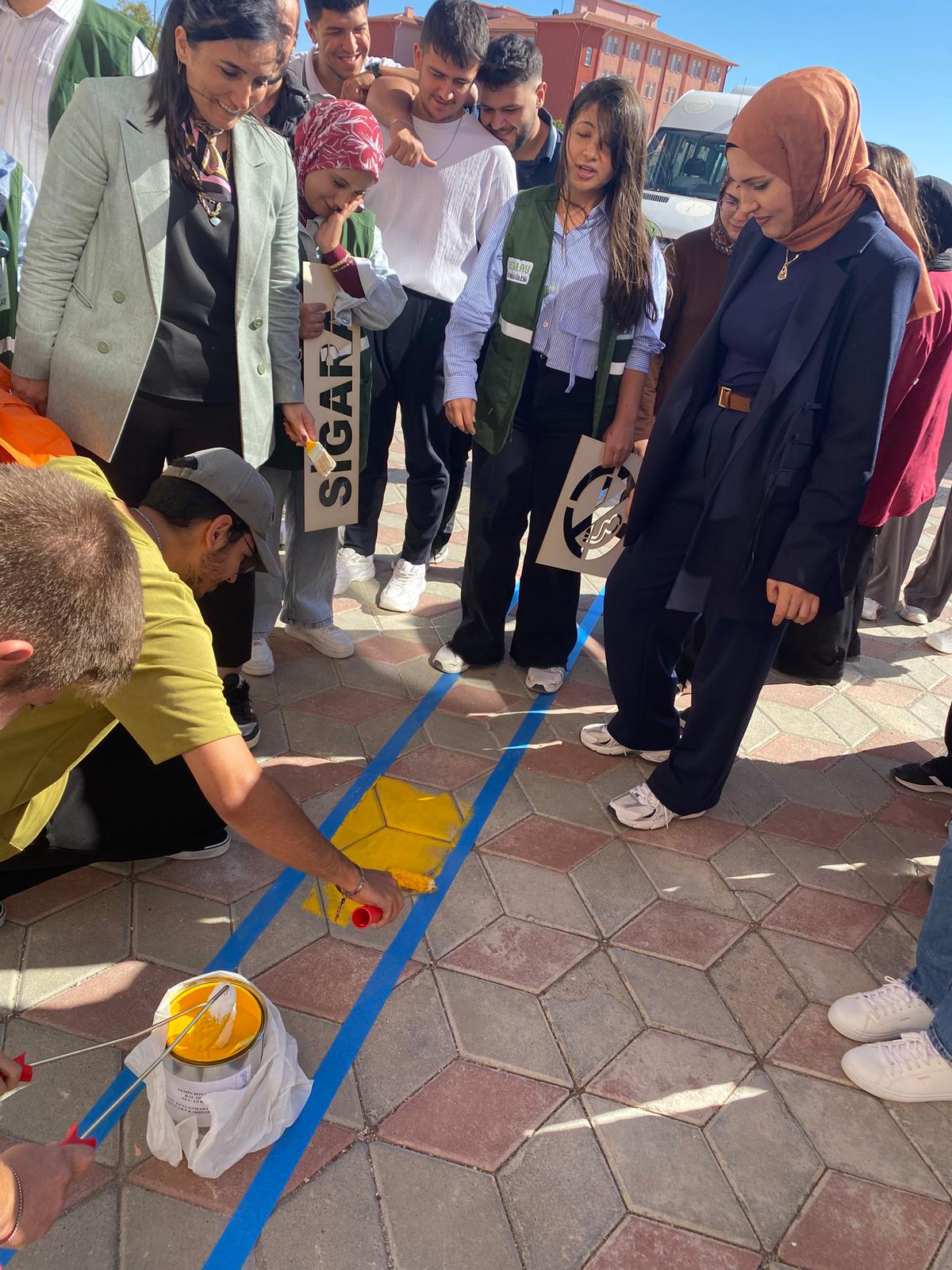 Programın devamında, yüksekokulumuzun giriş alanında “Dumansız Hava Sahası” farkındalığı oluşturmak amacıyla boyama çalışmaları yapıldı ve zemine bilgilendirici işaretler işlendi.
