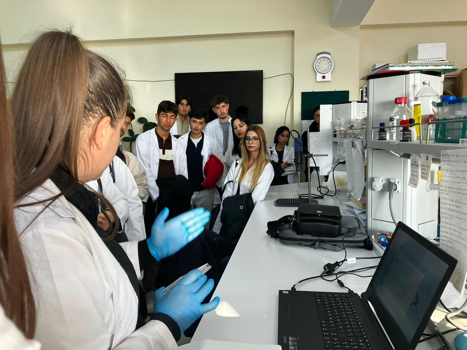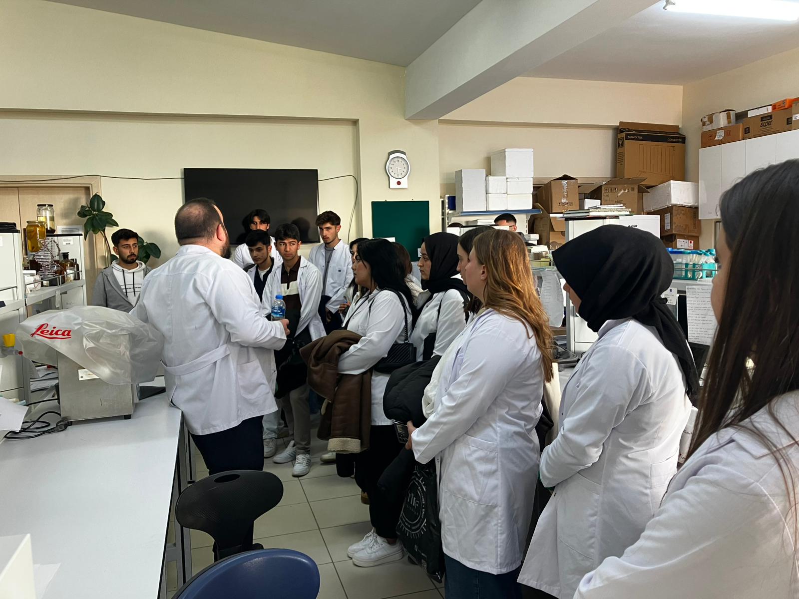 Bölümümüz 1. sınıf 1. dönemde verilen Veteriner Laboratuvar Teknikleri ve Prensipleri dersi bağlamında Üniversitemizin Fen Edebiyat Fakültesi, Biyoloji Bölümü laboratuvarlarına 1. ve 2. sınıf öğrencilerimiz ile birlikte teknik gezi düzenlenmiştir. Bölüm başkanımız Öğr. Gör. Fatih Oğuz Bekdemir sorumluluğunda gerçekleşen teknik gezide biyoloji bölümünde bulunan Öğrenci Laboratuvarı ve Genel Biyoloji Araştırma Laboratuvarı gezilmiş ve laboratuvarda bulunan cihaz ve sarf malzemeler öğrencilere tanıtılmıştır.