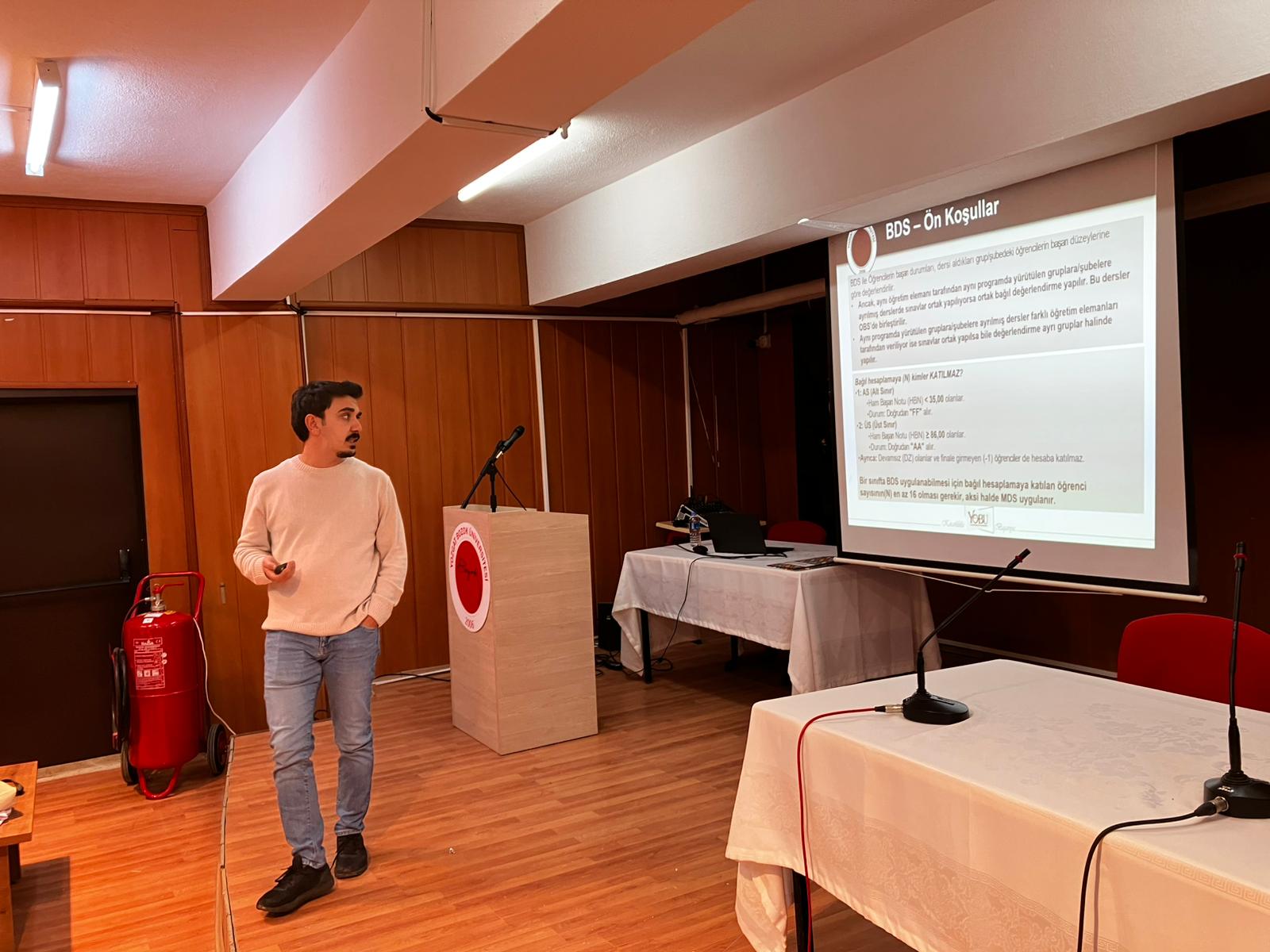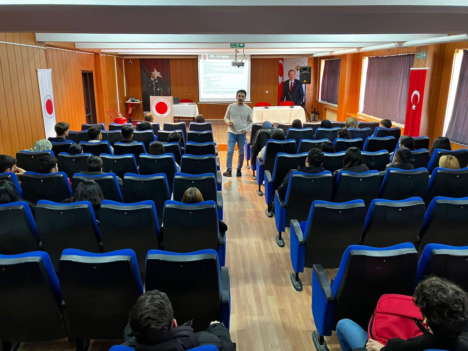 Bölümümüz öğretim üyesi Dr. Öğr. Üyesi Muhittin USLU hocamız tarafından okulumuzun konferans salonunda 1. ve 2. sınıf öğrencilerimize güz döneminden itibaren değişen 2025-2026 Eğitim-Öğretim Yılı Ders Başarı Değerlendirme Sistemi Eğitimi verilmiştir. Değişen sistem ile aktif olan MDS ve BDS hakkındaki gerekli bilgiler öğrencilere aktarılarak yeni sistemin ayrıntıları aktarılmıştır.