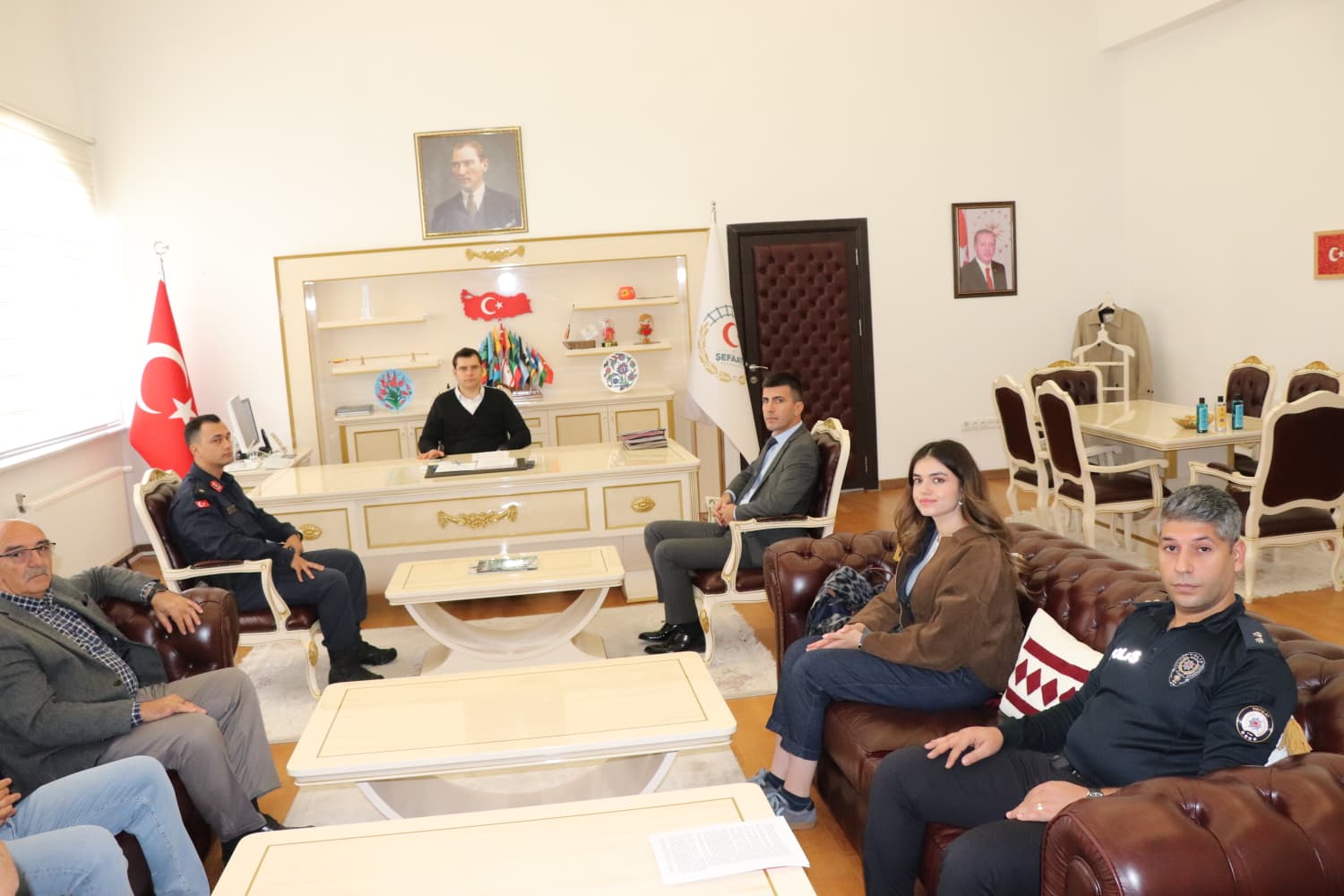 Toplantı, Şefaatli Kaymakamı V. ve Yerköy Kaymakamı Mehmet Halis Aydın başkanlığında, Şefaatli Meslek Yüksekokulu Müdürü Dr. Öğr. Üyesi Alperen ERDOĞAN, ilçe emniyet ve jandarma yetkililerinin katılımıyla yapıldı.