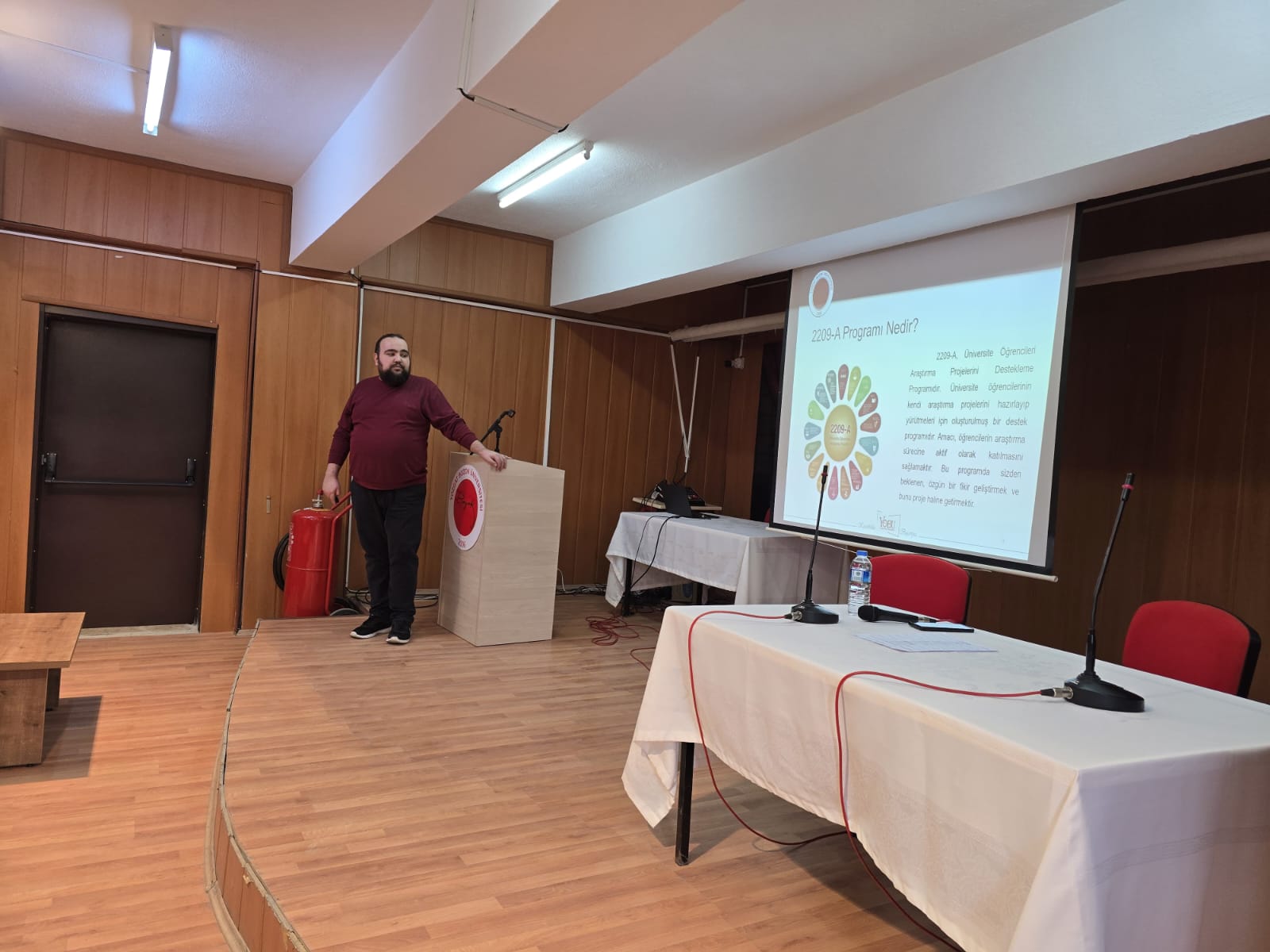 Toplantıda, proje destek programı hakkında detaylı bilgilendirmeyi Öğr. Gör. Fatih Oğuz Bekdemir gerçekleştirdi. Öğrencilere TÜBİTAK tarafından sağlanan 2209-A programının amacı, başvuru koşulları, proje hazırlama süreci ve değerlendirme kriterleri hakkında kapsamlı bilgi verildi.