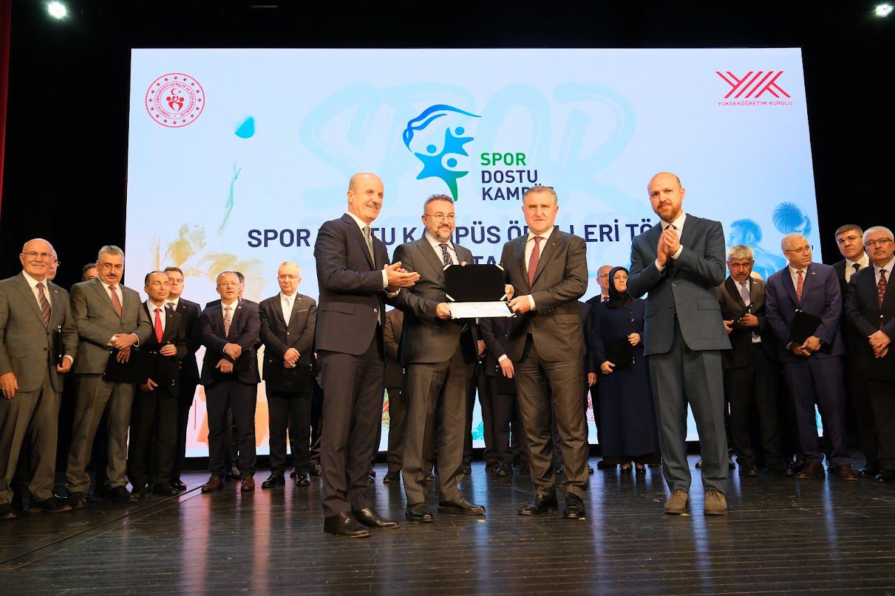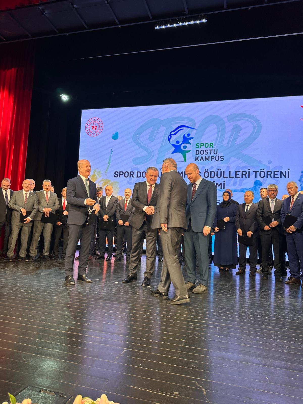 Recep Tayyip Erdoğan Üniversitesi ev sahipliğinde; Gençlik ve Spor Bakanı Dr. Osman Aşkın Bak, İlim Yayma Vakfı Mütevelli Heyeti Başkanı Necmeddin Bilal Erdoğan, Yükseköğretim Kurulu Başkanı Prof. Dr. Erol Özvar ve üniversite rektörlerinin katılımıyla düzenlenen Spor Dostu Kampüs Projesi Ödül Töreni'nde akredite belgemiz, Rektörümüz Prof. Dr. Evren Yaşar’a takdim edildi.