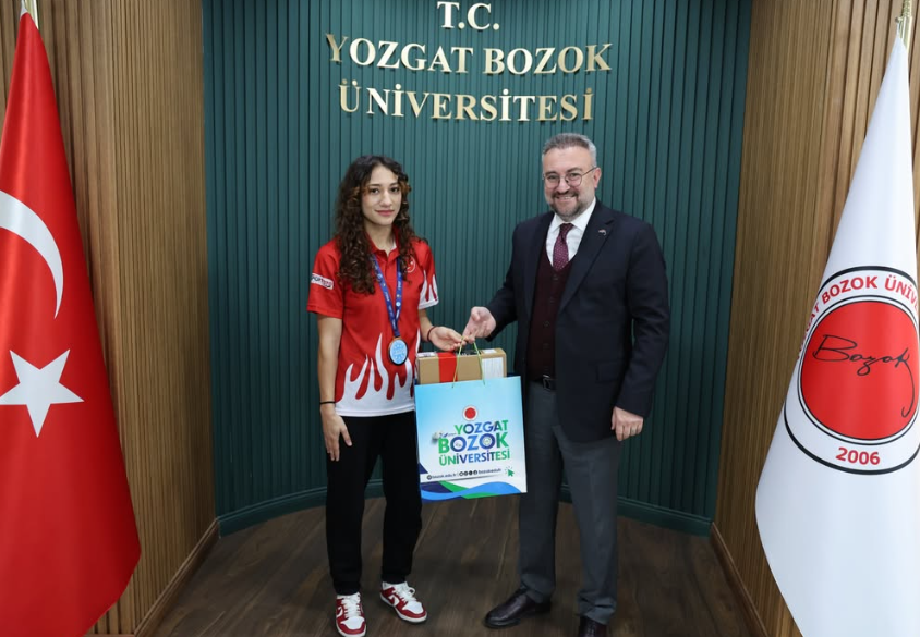 Rektörümüz Prof. Dr. Evren Yaşar, şampiyon öğrencimizi makamında ağırlayarak tebrik ederken, Spor Bilimleri Fakültesi Dekanımız Prof. Dr. Ercan Polat da öğrencimizin bu büyük başarısını kutladı ve gurur duyduklarını ifade etti.