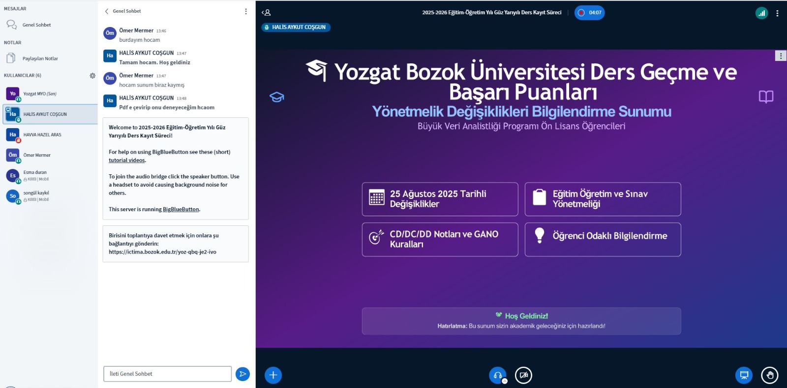 Büyük Veri Analistliği programımıza yeni katılan öğrencilerimizle ilk tanışma etkinliğimizi gerçekleştirdik. Programımıza adım atan öğrencilerimize hem bölüm hakkında genel bilgiler verildi hem de 2025-2026 Eğitim-Öğretim Yılı itibariyle yürürlüğe giren Yeni Ders Notu Değerlendirme Yönetmeliği hakkında bilgilendirme sunumu yapıldı.