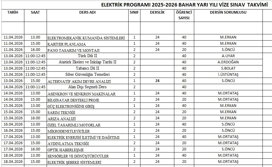 2025-2026 Eğitim Öğretim Yılı Bahar Dönemi Ara Sınav (Vize) Sınav Programını İndirmek İÇin Tıklayınız.