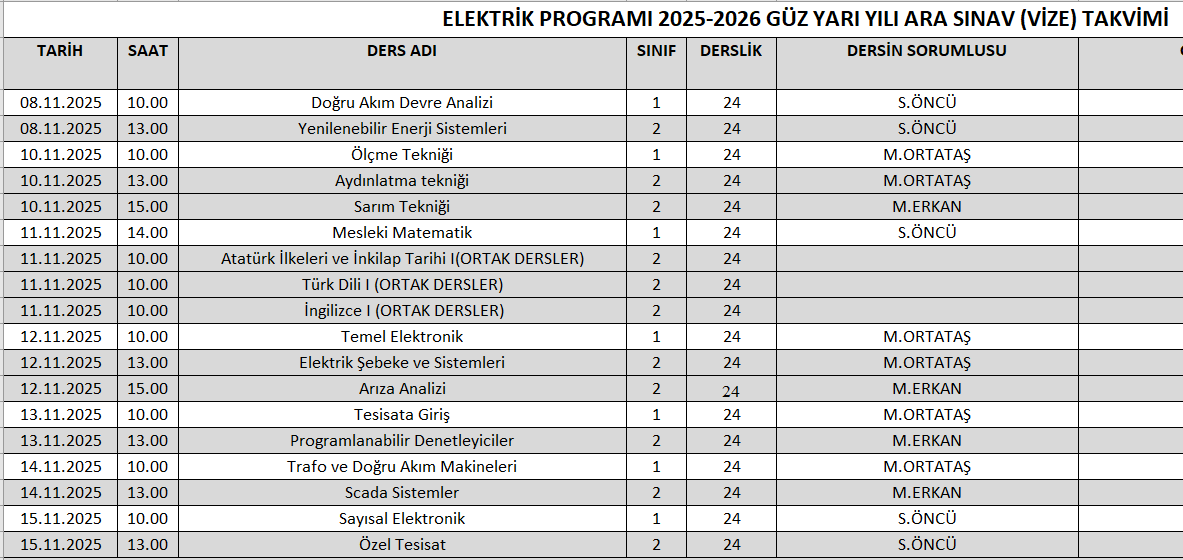 2025-2026 Eğitim Öğretim Yılı Güz Dönemi Ara Sınav (Vize) Programını İndirmek İçin Tıklayınız.