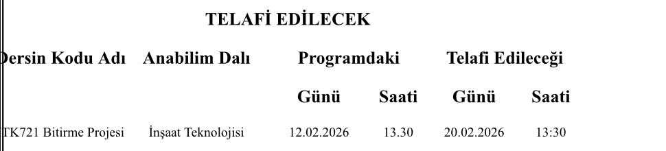 Elif Tuğçe Kocabeyoğlu hocamızın telafi ders programı için