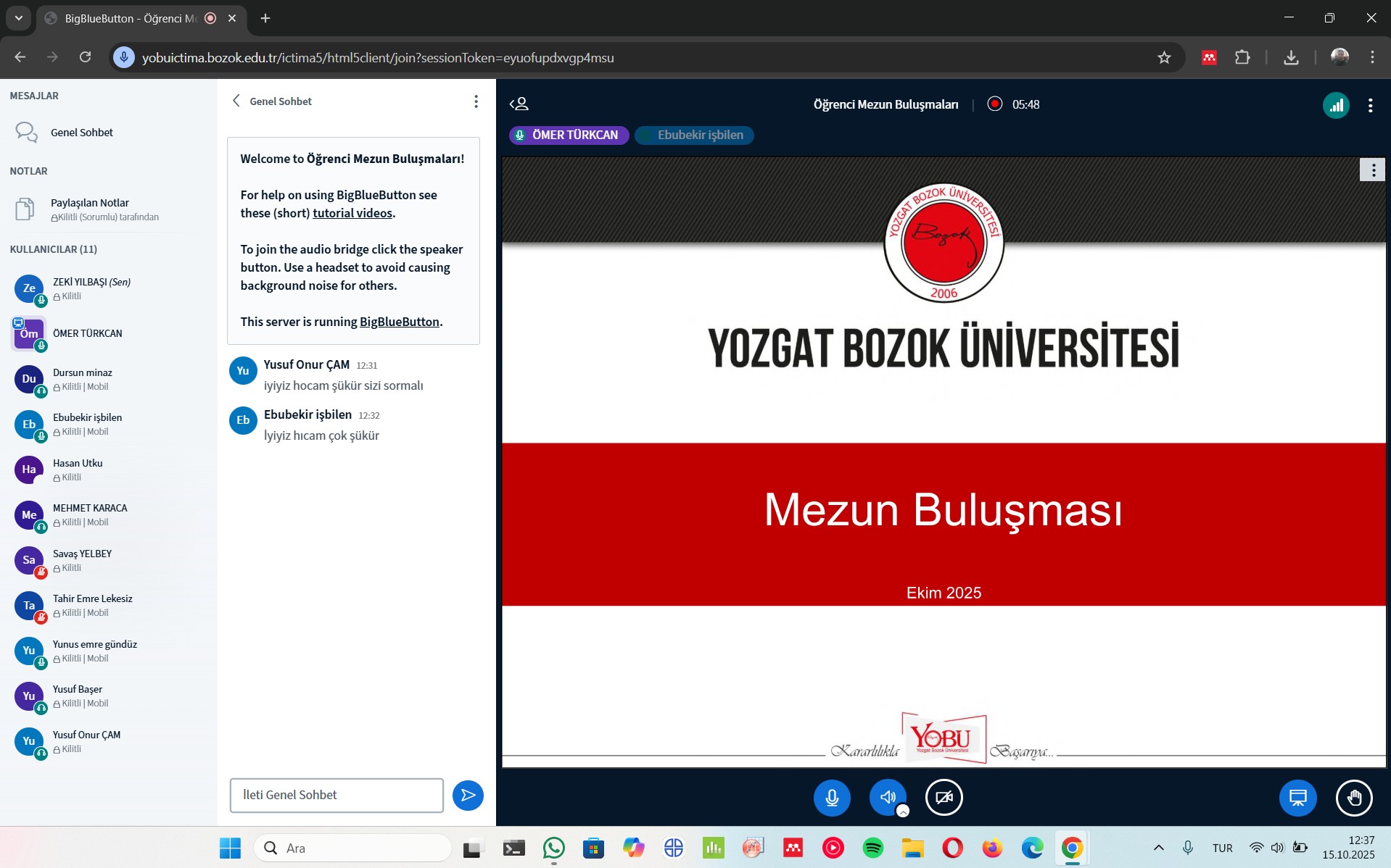 15 Ekim 2025 Çarşamba günü saat 12:00'da düzenlenen toplantıya, program akademik kadrosu ile Türkiye'nin farklı şehirlerinde çalışan çok sayıda mezun katılım sağladı.