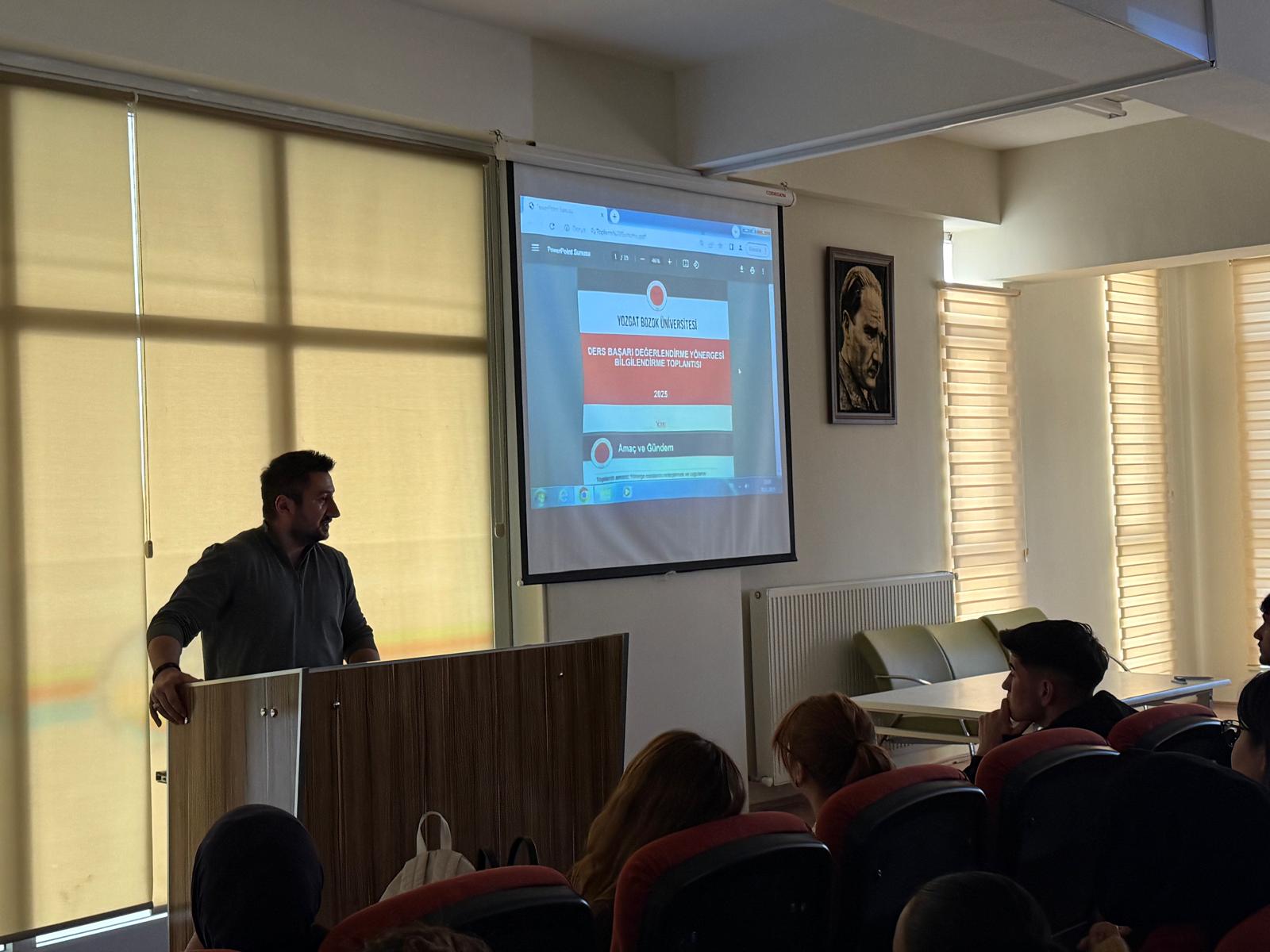 Bahçe Bitkileri Bölümü öğrencileri 24.08.2025 tarihli Yönetmelik değişiklikleri ile 24.09.2025 tarihli Senato Kararı kapsamında yürürlüğe giren “Ders Başarı Değerlendirme Yönergesi” detayları hakkında bilgilendirilmiştir. Ayrıca, öğretim elemanları ve öğrencilerle gerçekleştirilecek toplantılarda ays.bozok.edu.tr adresinde yer alan değerlendirme anketinin tüm katılımcılar tarafından doldurulmasının önemine değinilmiştir.
