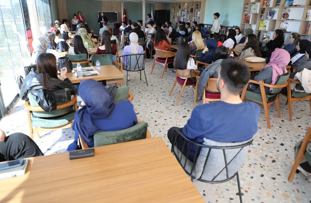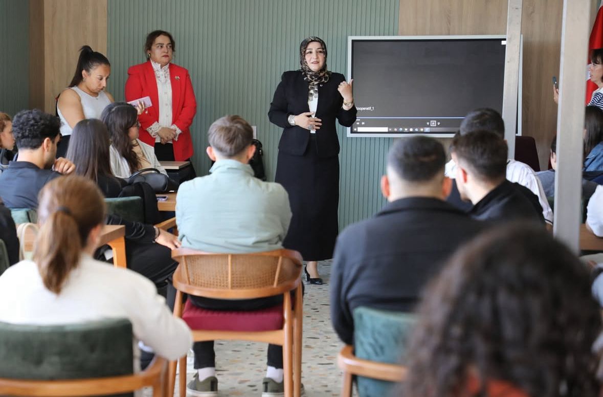 Sayın Ebru ÖRMÜŞ AKCAN bir kadının ekonomik olarak güçlendiğinde sadece kendi hayatını değil içinde bulunduğu toplumu nasıl dönüştürdüğünü ilham verici bir konuşma yaparak anlattı. Kadın kooperatifinin kuruluş hikayesini ve kadın kooperatiflerinin başarılarını, gelecek hedeflerini bizlerle İletişim Fakültesi öğrencileri tarafından çekilen video ile destekleyerek samimi bir dilde öğrencilerle paylaştı. Unutmayalım ki; bir Kadını güçlendirmek bir toplumu güçlendirmektir, bir kadın kooperatifi kurmak sadece işletme kurmak değil geleceğe yatırım yapmaktır.