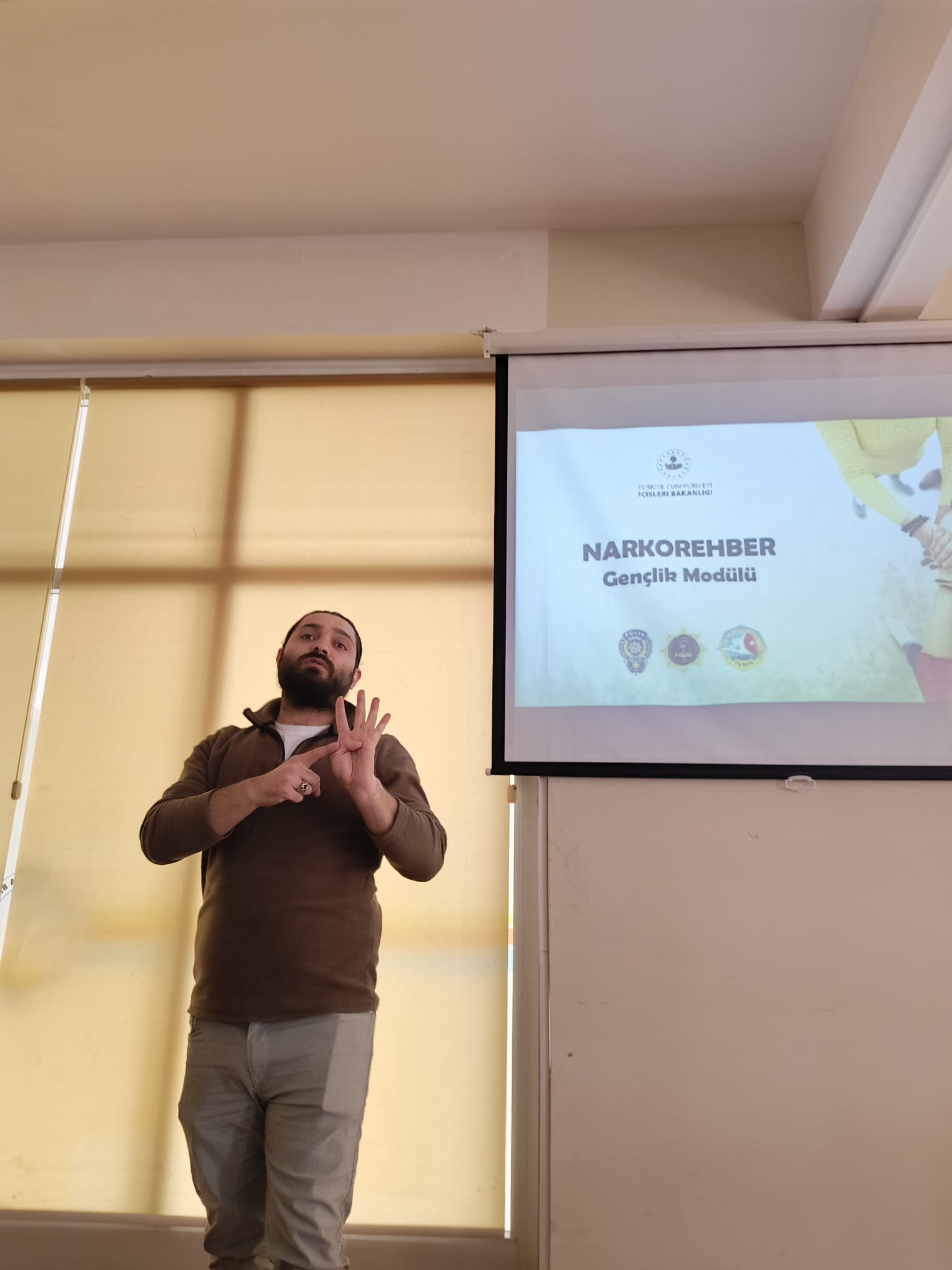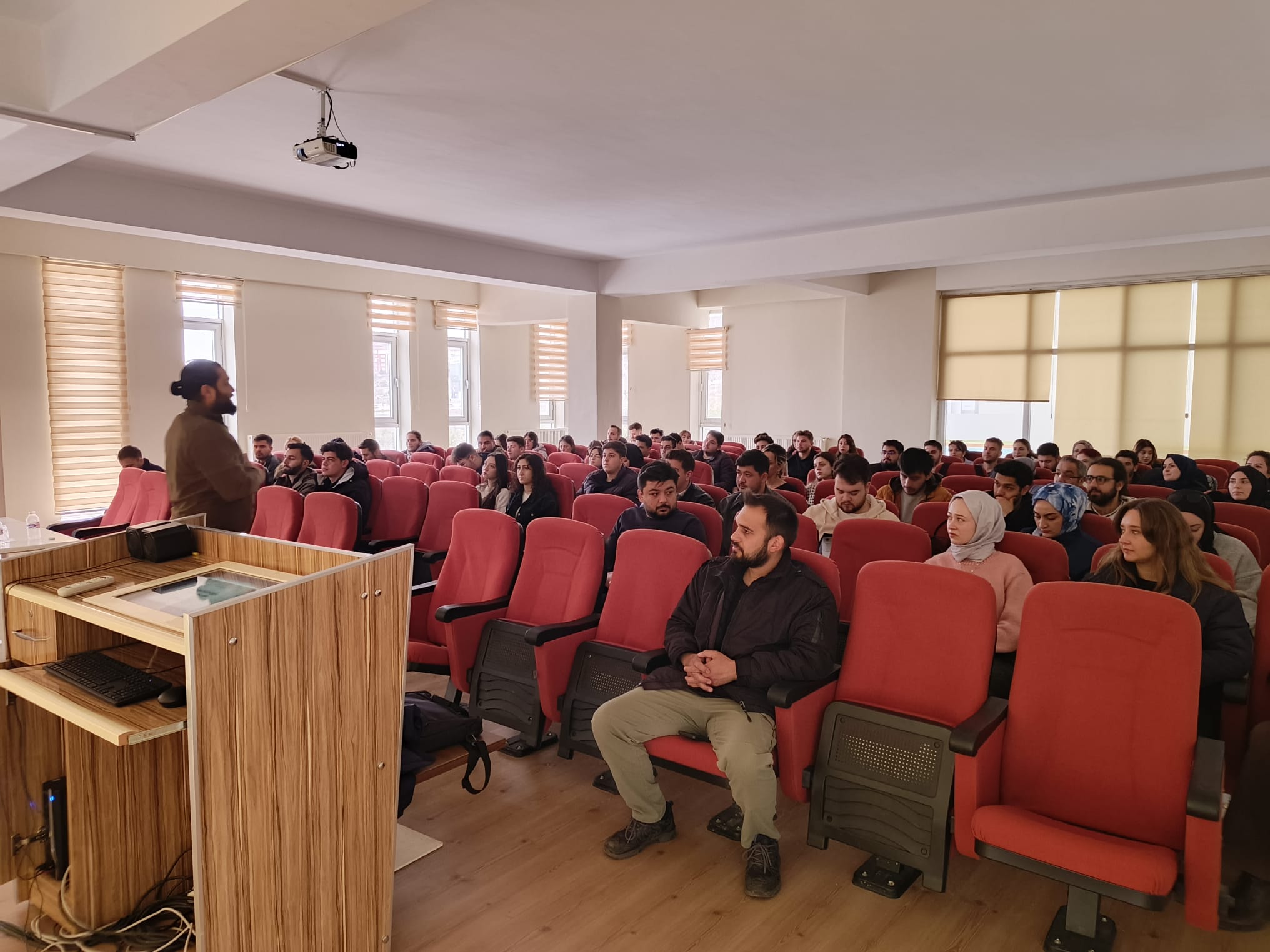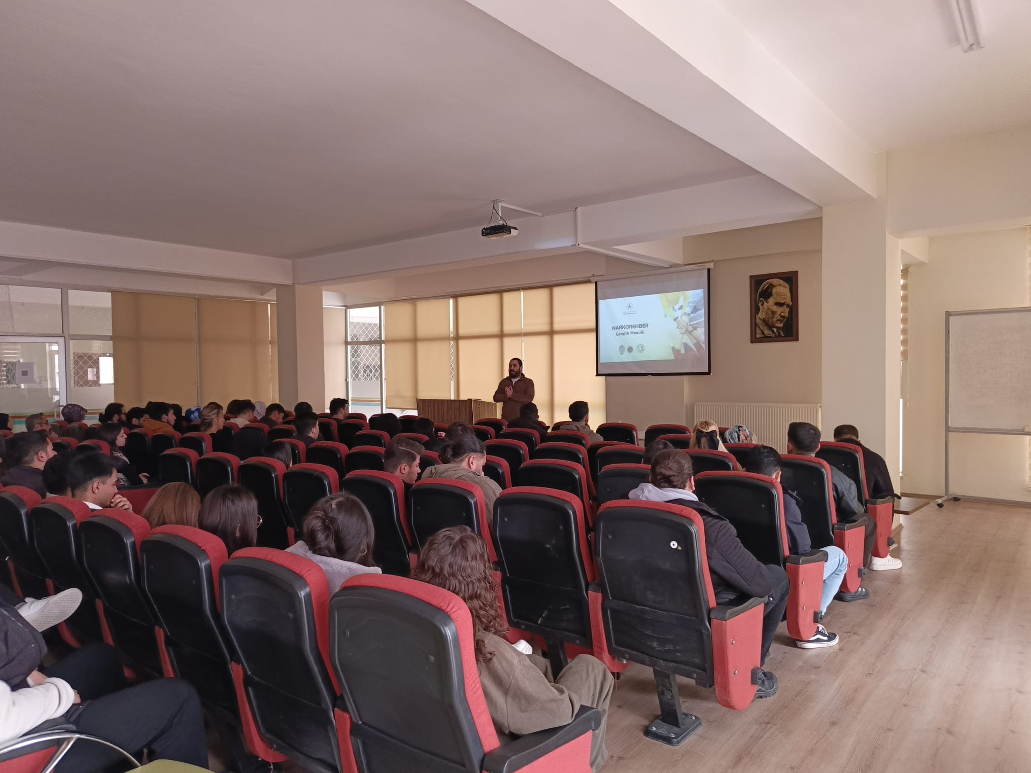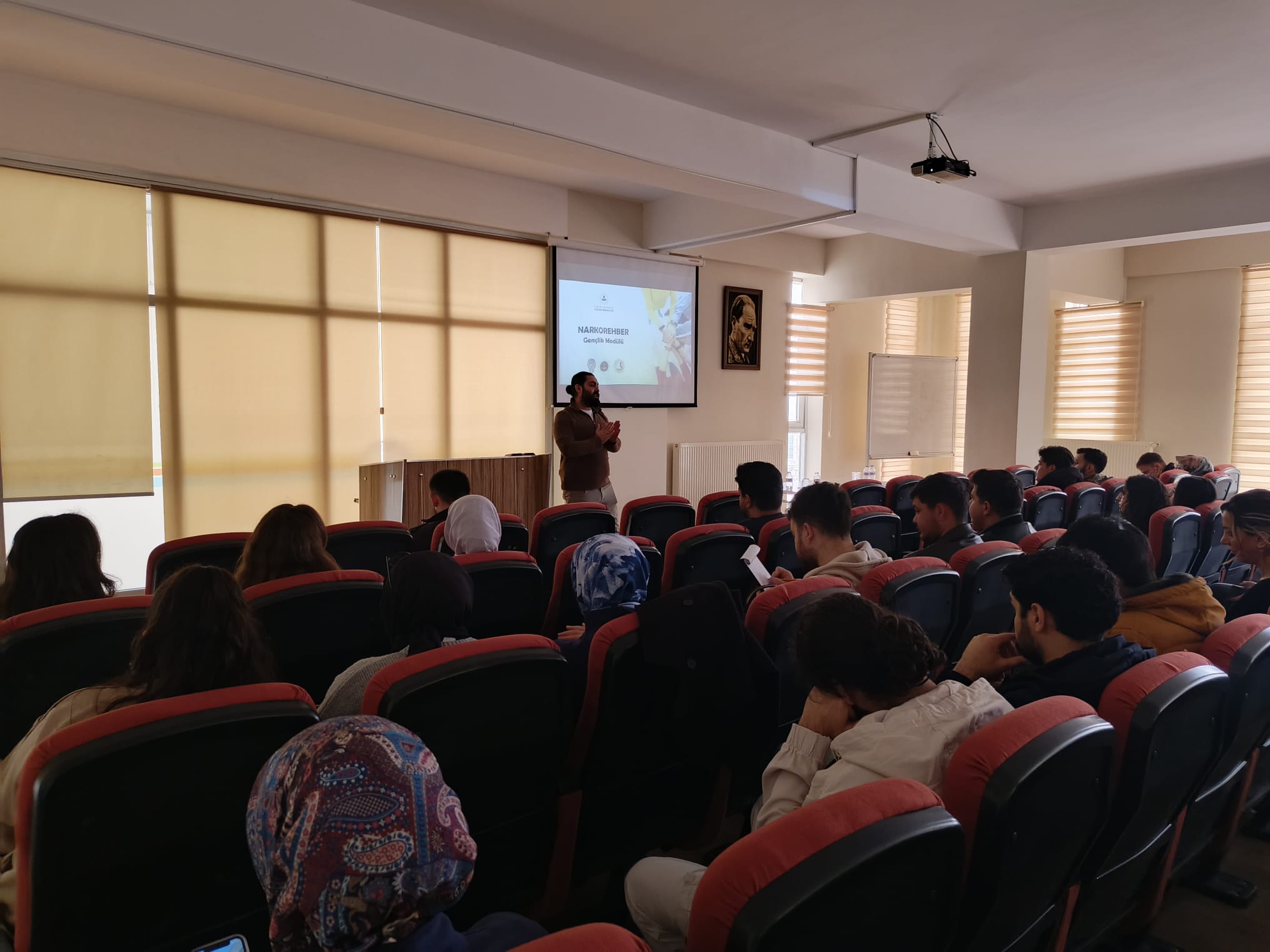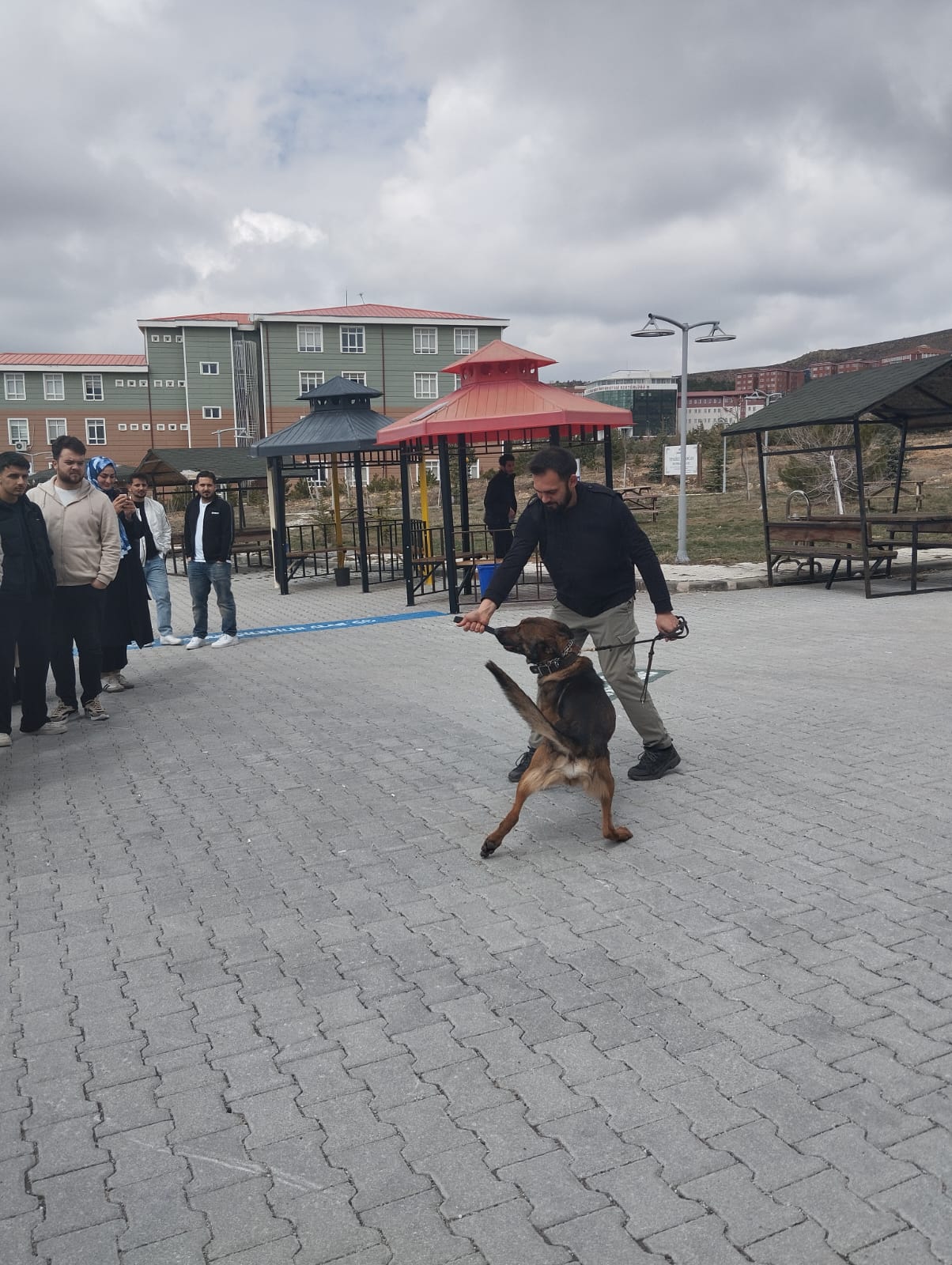 Fakültemiz tarafından, Yozgat İl Emniyet Müdürlüğü iş birliğiyle yürütülen “Narko Rehber” çalışması kapsamında, Toprak Ana Toplantı Salonu’nda eğitim programı gerçekleştirildi. Saat 11.30’da başlayan programa akademisyenler ve öğrenciler yoğun ilgi gösterdiler. Eğitim kapsamında, uyuşturucu ile mücadele konusunda katılımcılara kapsamlı bilgiler aktarılırken, bağımlılığın zararları ve korunma yolları üzerinde duruldu. Programın dikkat çeken bölümlerinden biri ise narkotik köpekleri eşliğinde gerçekleştirilen simülasyon uygulamaları oldu. Katılımcılar uygulamalı gösterimlerle narkotik ekiplerinin çalışma yöntemlerini yakından gözlemleme fırsatı buldu. Gerçekleştirilen etkinliğin öğrencilerin bilinçlenmesi ve farkındalık kazanması açısından önemli katkı sağladığı ifade edilirken, benzer çalışmaların önümüzdeki süreçte de devam edeceği belirtildi.