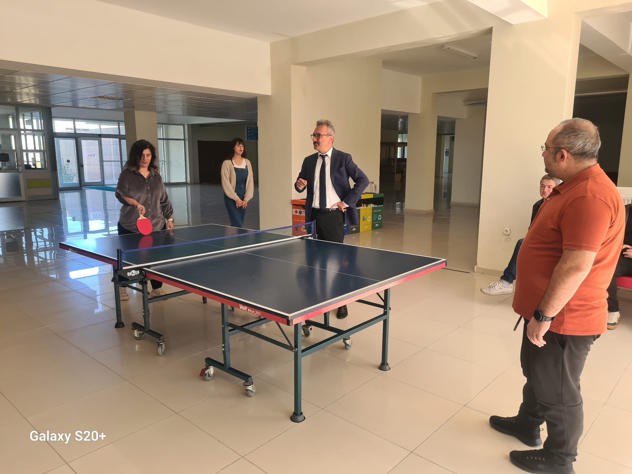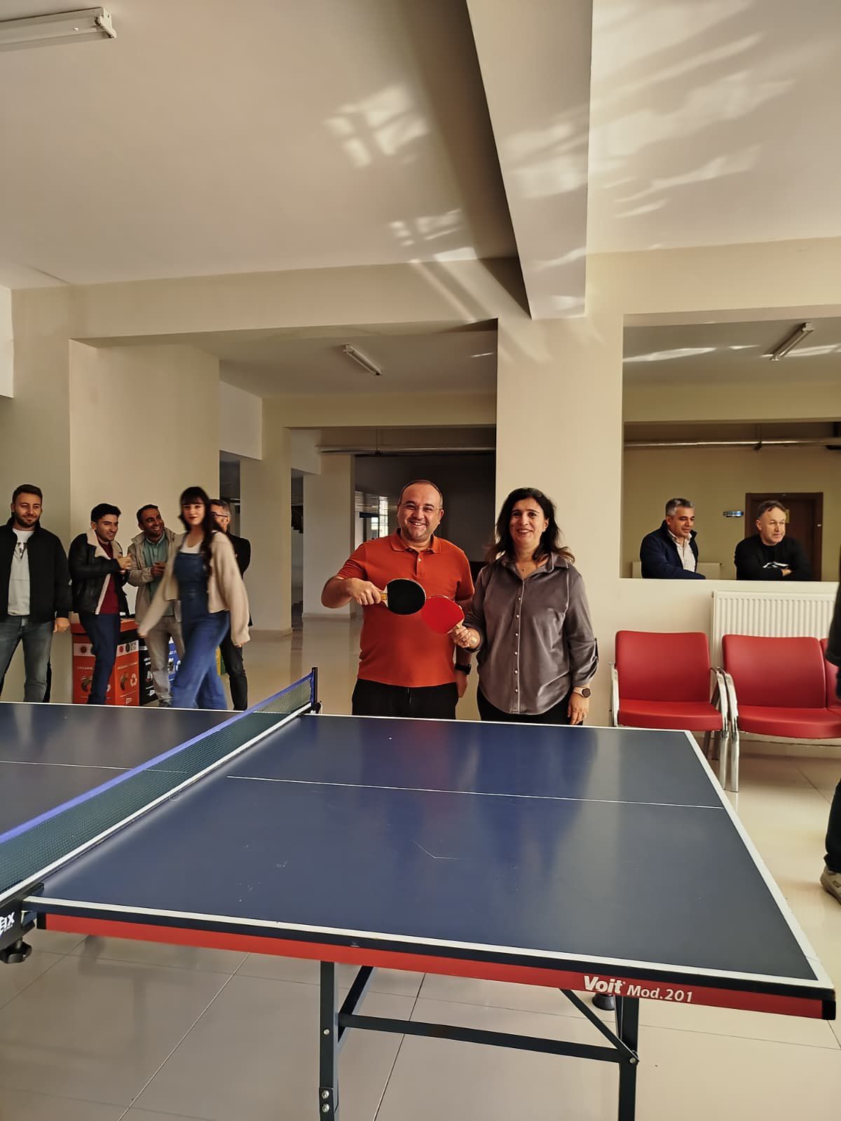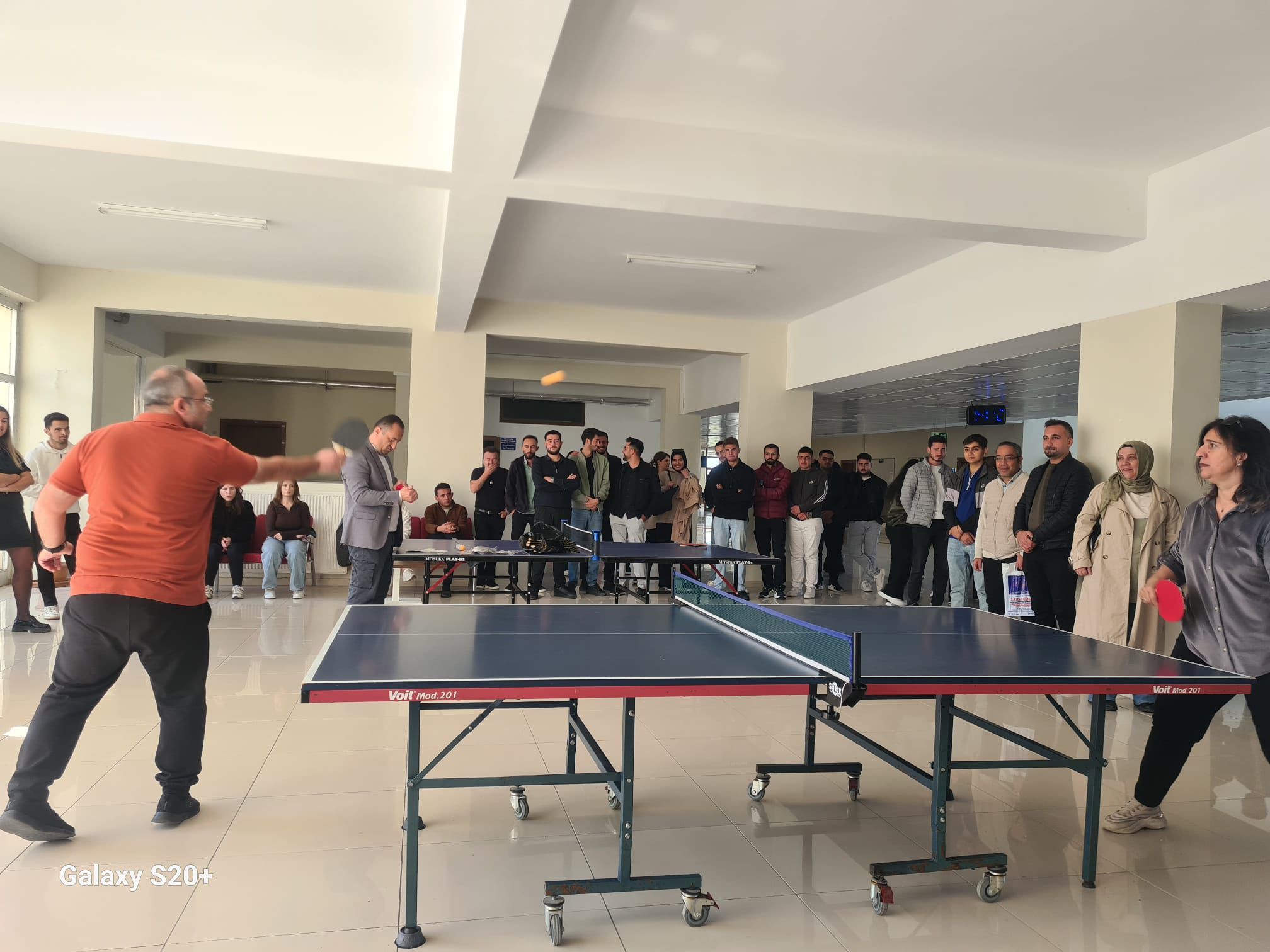 “Bağımlılığı Yen, Sporla Güçlen” sloganıyla gerçekleştirilen etkinlikte, öğrencilere sporun bağımlılıklardan uzak durmadaki önemi vurgulandı. Etkinlik kapsamında fakültemizde masa tenisi gösteri maçı yapıldı. Karşılaşmada Eğitim Fakültesi Dekanı Sayın Prof. Dr. Gürsel Güler ile fakültemiz Dekan Yardımcısı Sayın Prof. Dr. Aysen Koç yer aldı.