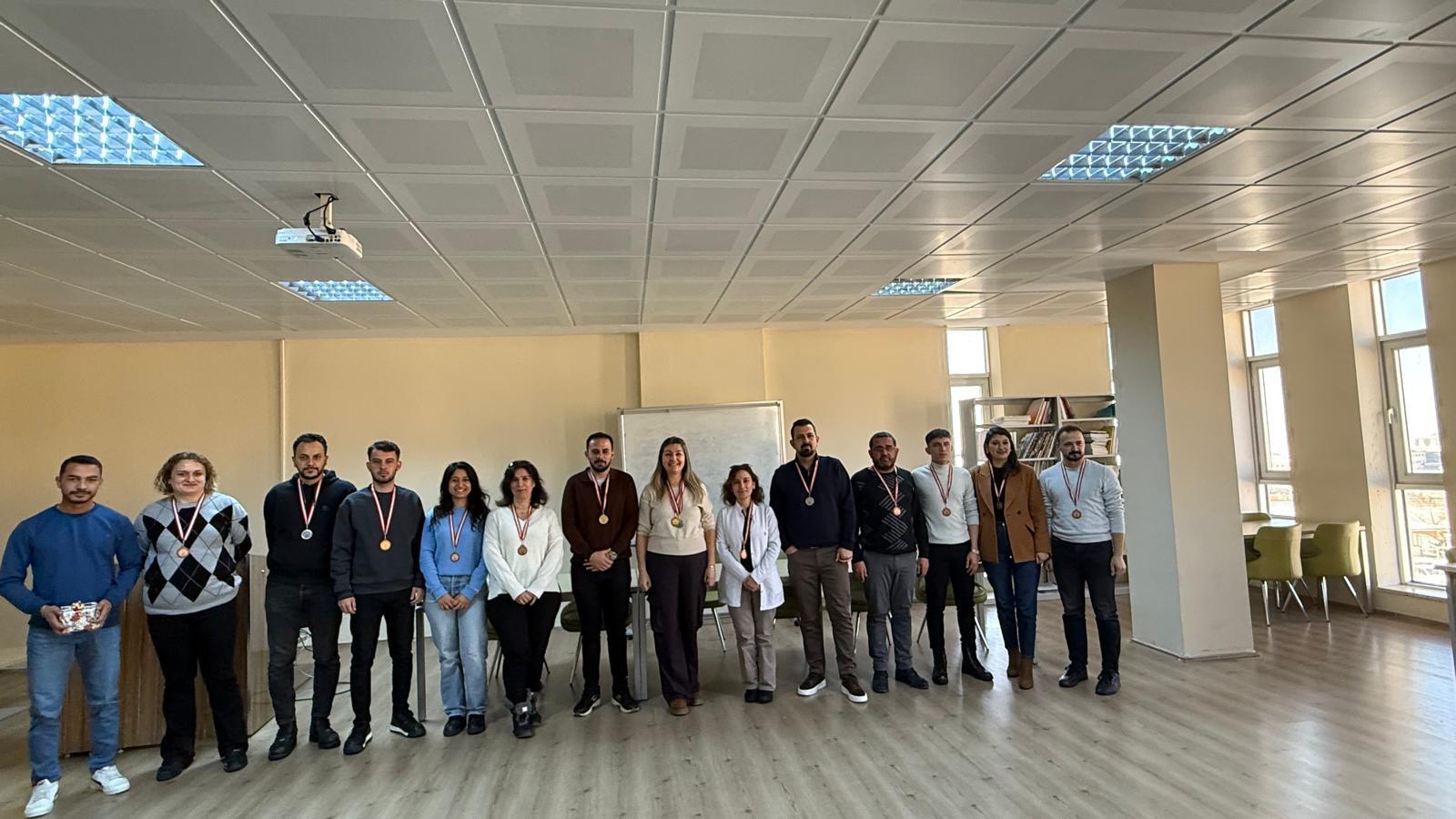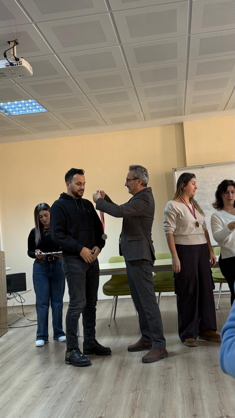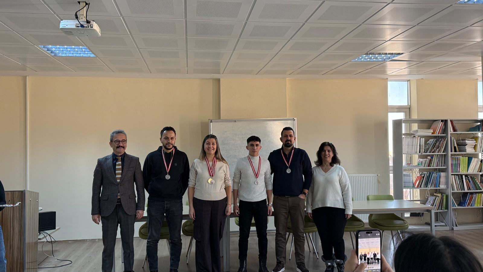 Üniversitemiz organizasyonu olan 6. Proje Etkinliği ve Yarışmasında dereceye giren Fakültemiz öğrencileri ve proje danışmanı akademisyenlerimiz için Dekanlığımız tarafından madalya merasimi düzenlendi. Programda Sayın Dekanımız Prof. Dr. Tuğrul YAKUPOĞLU öğrencilerimizle tek tek ilgilendi ve madalyalarını taktı. Öğrencilerimizi ve proje danışmanı hocalarımızı tebrik eden Dekanımız, “Projeci bir nesil yetişiyor, Türkiye Yüzyılında üzerimize düşeni yapmak için çok çalışkan ve özenli olmalıyız. Birlikte başarmanın hazzına ulaştığımızda göreceksiniz ki işler kolaylaşacak. Takım ruhunu önemseyin. Öğrencilerimi ve hocalarımı tebrik ediyor, başarılarınızın devamını diliyorum” dedi. Katılım sağlayan akademisyenlerle ve öğrencilerle gerçekleştirilen sohbetin ardından program son buldu.